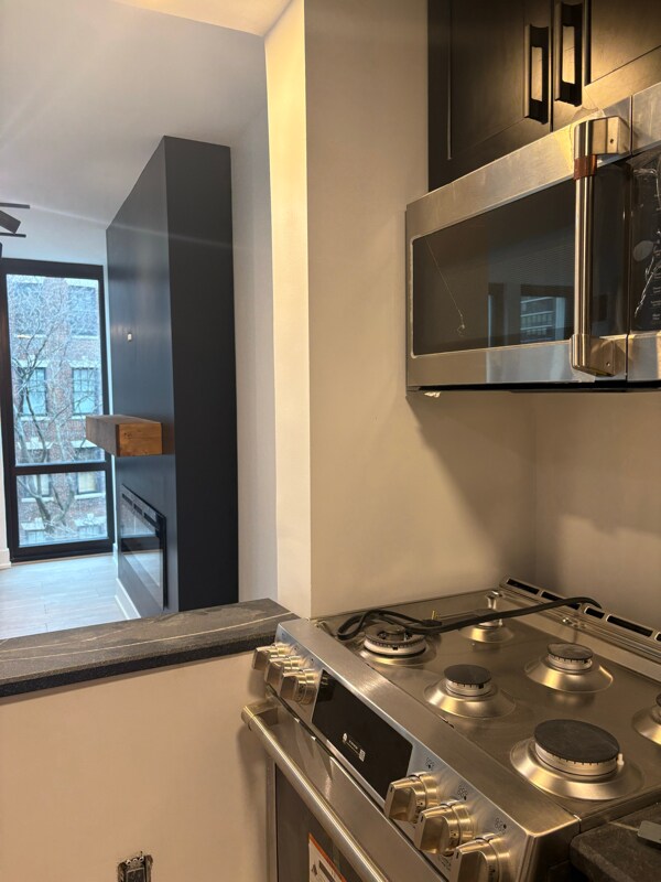 Property Id: 2288520 Luxurious, fully gut-renovated Gold Coast studio. This designer unit features warm wood floors, bold black accents, a black fireplace wall with dimmable lighting, and a built-in entry bench with cubbies. The sleek kitchen offers two-tone cabinets with brass mesh, leathered granite countertops, stainless steel gas range, dishwasher, microwave, and counter-depth fridge. Enjoy a custom walk-in closet, spa-like bath with floating vanity and lighted shower niche, utilities + internet included, rooftop pool, laundry room, and secure elevator building—just steps from Rush, State, Oak, and the lakefront.