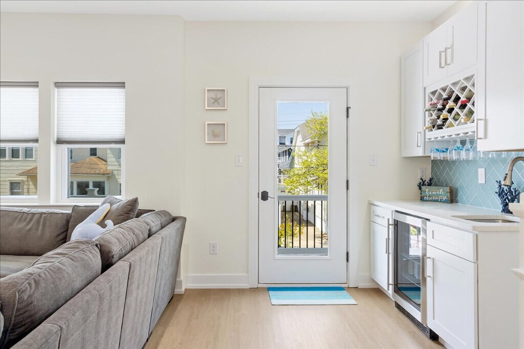 Feel at home in this modern coastal 3-bedroom, 3-bath townhouse in Ventnor City’s peaceful North Beach, just two blocks from the beach. This home is designed to ensure a memorable stay, creating a perfect blend of comfort, functionality, and relaxation. The open-concept living area features plush seating, a large TV, and plenty of natural light. The fully equipped modern kitchen includes stainless steel appliances, all cookware and dishes, a toaster, blender, Keurig coffee maker, an island with bar seating, and ample counter space. Enjoy the convenience of smart TVs throughout, a wet bar for entertaining, an outdoor shower, central heating, air conditioning, and an in-unit washer and dryer. One off-street driveway parking space and two parking passes for free street parking are available. Nestled along the northern stretch of Ventnor City, North Beach offers a picturesque coastal setting characterized by pristine beaches and stunning ocean views. It's an idyllic destination for those seeking a peaceful and relaxing beachside retreat. Unlike some of the busier areas in Ventnor City, North Beach boasts a quieter and more tranquil atmosphere, making it perfect for those looking to escape the hustle and bustle of everyday life. Getting around is easy with readily available rideshare services. You're also within walking distance of the beach, and many local attractions are nearby. Quiet hours are between 10 pm and 8 am. Guests must be respectful of neighbors and the community at all times. Any disturbance incident that results in police involvement may result in the immediate termination of the reservation and removal from the rental without refund or warning. There is a zero-tolerance policy. All guests will be required to upload a valid photo ID and verify with a selfie to the trusted partner's secure, data encrypted portal before being allowed to check in. Any evidence of smoking will be automatically billed an additional cleaning fee. Guests are fully responsible for any damage, excessive cleaning, or disturbances caused by their pets during their stay. Guests with pets are 100% responsible for keeping their pet under control at all times. If you have a service animal, please book one of the pet-friendly listings. [SI]