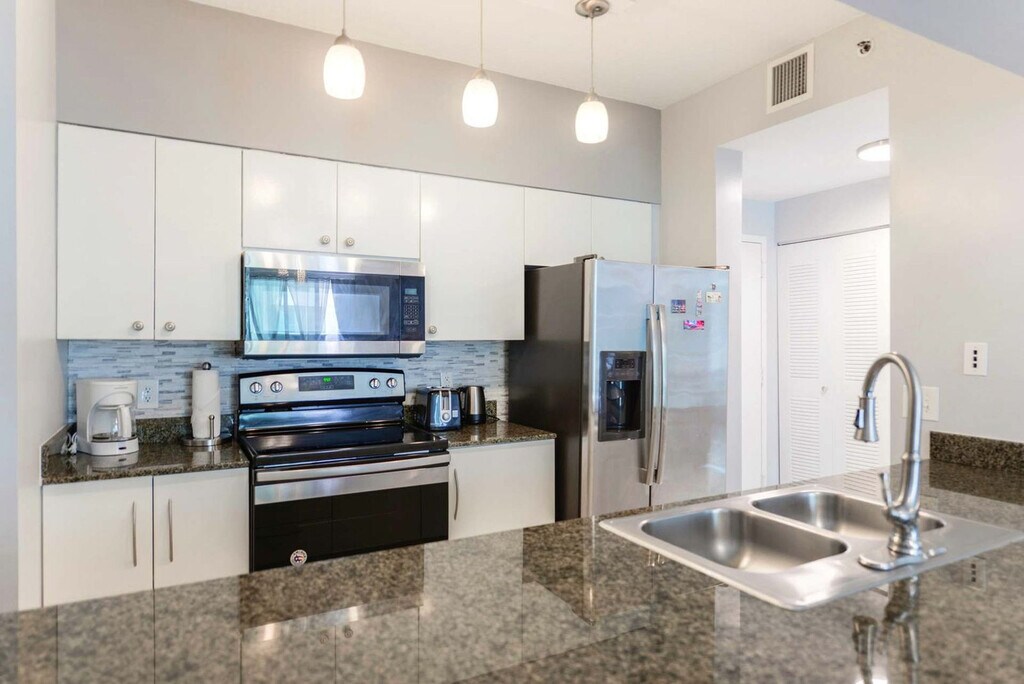 Experience luxury living in this stylish condo on the 42nd floor in the heart of Brickell, featuring breathtaking city skyline views. This retreat offers a fully equipped kitchen, a comfortable living area, and a private balcony perfect for relaxing. Experience the perfect blend of comfort, modern design, and prime location, ideal for both business travelers and leisure seekers. Stylishly furnished to make you feel right at home, this condo is smartly priced without compromising on modern elegance. Enjoy a private balcony with stunning city skyline views, a living area with a comfy sofa bed perfect for guests, a cozy queen bed with a TV for ultimate relaxation, a fully equipped kitchen for effortless meals, and an in-unit washer and dryer for your convenience. Enjoy amenities including outdoor pools, a jacuzzi, and a fully equipped gym. Stay where Miami comes alive—just steps from top attractions, upscale shopping, and vibrant nightlife in the city’s most dynamic neighborhood. You’re steps from Brickell City Centre, top restaurants, cafes, shops, and the Metromover Financial District station, with access to Downtown Miami. Nearby highlights include Brickell City Centre for luxury shopping, Mary Brickell Village for chic cafes and open-air dining, Bayfront Park for stunning waterfront views, and Miami Beach for iconic beaches and nightlife. The main guest must be 25 or older. Each unit includes 1 physical key and 1 fob per building rules. For added convenience, our smart lock system allows entry via app or digital codes. A virtual fob is available at the front desk for approximately $10 daily from 8 AM to 10 PM. Washcloths are not provided. No parties or loud gatherings are allowed, and violations may result in fines issued by building management, which will be passed to the responsible guest. The main guest’s name must be provided in advance and this person must be the first to check in at the front desk. If someone else needs to check in, a $53 update fee will be required at the front desk. Smoking inside the property is strictly prohibited, and a $300 fine will apply if any evidence of smoking is found. Check-in is scheduled for 4:00 p.m., and check-out is at 11:00 a.m. If you need a late check-out, please contact us with 24 hours’ notice; please note that this will generate an additional cost. Lost apartment keys or fobs will require a replacement fee. Please avoid loud noises, especially during nighttime, as this is a residential building. Please remember to turn off the air conditioning when leaving the unit to help us maintain an energy-efficient and comfortable environment. [SI]