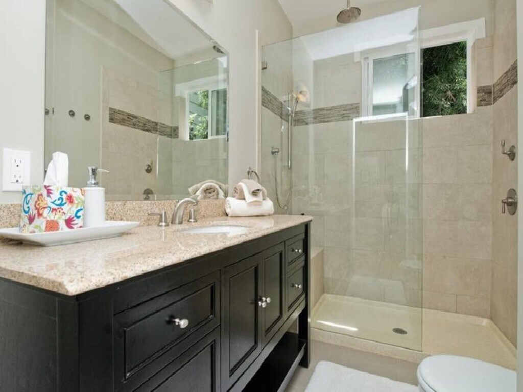This charming 1-bedroom, 1-bathroom apartment in North Beach offers a unique living experience with its 10-foot ceilings, redwood deck, and stunning city views. Feel at home with high-end finishes like stainless steel appliances, granite countertops, and radiant heated flooring. The apartment is located on the upper level of a single-family home, featuring a brick-paved driveway surrounded by lush landscaping and towering trees. The apartment is thoughtfully designed with a queen sofa bed in the living area and a luxurious ensuite bathroom with quartz counters. The kitchen is perfect for home cooking with breakfast seating and ample storage in the copious closets. A gas fireplace adds a cozy touch to this beautiful home. The apartment offers tandem, secured uncovered courtyard parking for two mid-size or smaller vehicles, though the guest is allowed only one of the two spaces. The parking entrance is narrow and best approached from a downhill angle. Situated just steps away from the iconic Coit Tower, this apartment is a short walk down the hill to the vibrant North Beach area, renowned for its shops and restaurants, making it an ideal location for exploring the city. The washer and dryer are shared with the unit below and are located on site. Note that initial supplies like toilet paper, soap, and detergent are provided, but any additional supplies need to be replenished by the guest as restocking is not provided. Cleaning supplies are not stocked due to safety issues. [SI]