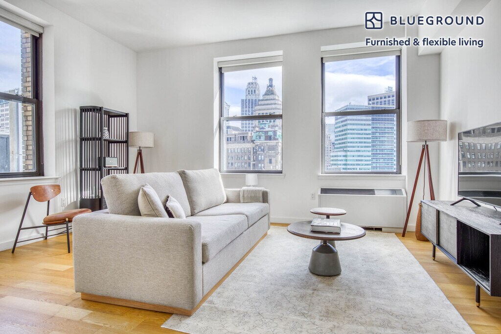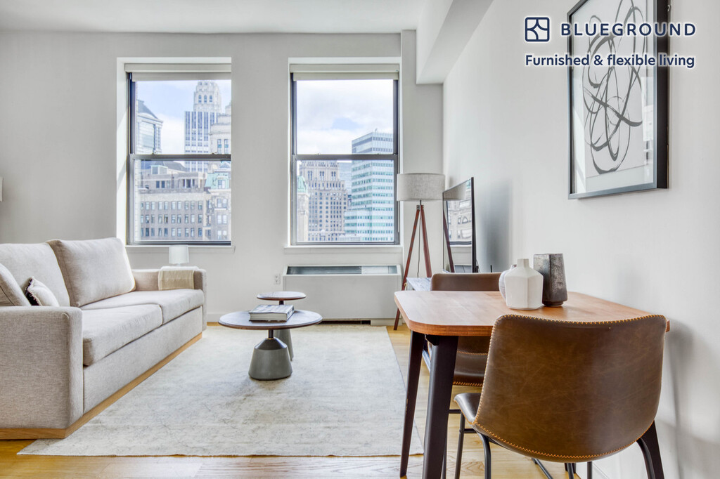 Ofrecemos precios personalizados por cualquier duración. Las tarifas pueden variar según las fechas exactas de mudanza. La tarifa para esta casa comienza en $3,800* / mes. Visita nuestro sitio web e ingresa tus fechas de estadía para ver los precios actualizados para tu reserva específica. *El precio cotizado es: (1) según la mudanza en el primer día en que el apartamento está disponible, (2) aplica solo si se factura por adelantado, puede ser más alto si se factura en múltiples pagos, (3) exclusivo de cualquier impuesto o servicio público. ¡Se admiten agentes inmobiliarios! Pagamos un 5% de comisión sobre el alquiler. Descubra lo mejor del centro de la ciudad con este apartamento de un dormitorio del distrito financiero con vista a la ciudad desde una de las plantas más altas del hotel. Será fácil simplemente presentarse y comenzar a vivir en este amplio apartamento amueblado en Blueground con su cocina totalmente equipada, una hermosa sala de estar y nuestro dedicado servicio de asistencia en el terreno. (ID #NYC667) Diseñado pensando en usted. Diseñado cuidadosamente con acabados personalizados, muebles modernos y una cocina totalmente equipada, disfrutará de esa sensación de “Estoy en casa” con este apartamento Blueground. Ya sea que esté descansando en su amplia sala de estar transmitiendo lo último y mejor en entretenimiento en el televisor inteligente o el altavoz inalámbrico premium, o disfrutando de un merecido descanso en el colchón de calidad superior con sábanas de lujo, se enamorará de todo lo que este apartamento del distrito financiero tiene para ofrecer. Dormir camas Queen, servicios de 160 cm Los servicios del edificio exclusivos de este dormitorio incluyen: - Portero - Secador en el edificio - Ascensor - Gimnasio - Lavadora en el edificio - Salón - Se permiten mascotas Llegada y asistencia continua ¡Todo el apartamento es suyo! Un miembro del equipo de Blueground te dará la bienvenida personalmente o te dará instrucciones para el auto check-in. Durante su estancia, tendrá acceso a nuestro equipo de experiencia del cliente a través de la aplicación Blueground. Puedes programar limpiezas adicionales, enviar solicitudes de mantenimiento y ver nuestras recomendaciones de vecindario con solo unos pocos toques. Compartiremos todos los detalles tras la confirmación de su estancia. Con una ubicación ideal Este apartamento amueblado está ubicado en el distrito financiero, también conocido como FiDi. Sede de Wall Street, One World Trade Center, South Street Seaport y Bowling Green, es un centro de actividad constante. Durante la semana, la acera siempre está bulliciosa y los restaurantes están llenos de profesionales. Los resplandecientes rascacielos y los famosos monumentos hacen de este uno de los barrios históricos más reconocibles de la ciudad. En metro, Times Square se encuentra a unos 20 minutos. Otras cosas que hay que tener en cuenta Los servicios del edificio pueden tener un costo adicional. Este apartamento de Blueground tiene opciones de arrendamiento flexibles, lo que te permite reservarlo por un mes, un año o más. Las mascotas son bienvenidas, aunque se aplican límites de peso y restricciones de raza y pueden incurrir en cargos. Intermediarios CYOF. Nos enorgullecemos de asegurarnos de que cada foto que se muestre se tome en nuestros propios apartamentos con nuestro mobiliario real. Dicho esto, actualizamos regularmente nuestra decoración y disposición de muebles, que pueden diferir de lo que se muestra en la imagen. También tenga en cuenta lo siguiente: - El edificio del apartamento está en proceso de renovación y es posible que escuche ruidos de construcción dentro de su apartamento de vez en cuando