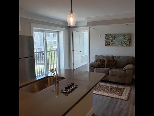 Charming two bedroom apartment located in the heart of historic downtown Dover. This unit features an open concept kitchen/living area with quartz countertops, stainless steel appliances, and crown molding. It also includes a one full and three-fourth bath, a laundry closet with washer/dryer hookups, and has two Juliette balconies. Each unit has its own mini-split heating & air conditioning unit. The building is ICF construction, which is economical to heat or cool. Off-street parking is available. Enjoy the nearby attractions such as Doug's Hoagies, Southern Girl Bakery, walking trails, and more. No pets or smoking allowed. Broker interest. *Pictures of similar unit.