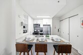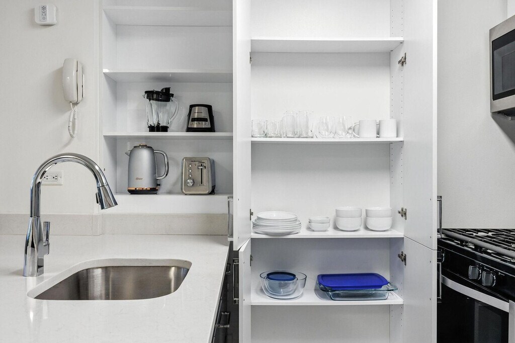 Feel at home in this spacious 1-bedroom apartment in the heart of New York City’s Financial District, with Wall Street at your doorstep. Please note that the elevators are being renovated until Spring 2026. This fully furnished apartment is specifically designed for remote workers and professionals and includes a king-size mattress, a full bathroom, a fully equipped kitchen, a smart TV, and all utilities. Amenities include a stocked kitchen with a Keurig coffee machine and pods, stainless steel appliances including a dishwasher, and an in-unit washer and dryer. The building offers two sets of elevators, a business center and conference rooms, a resident lounge and bar with pool tables, a rooftop sundeck with city views and BBQ grills, and a dry cleaner in the lobby. There is a 24-hour door attendant, a 24-hour Duane Reade across the street, and a Starbucks next door. Special rates are available at the onsite Complete Body Fitness Club. Stroll through Battery Park, enjoy a delicious meal by the Seaport, or indulge in high-end shopping at the Brookfield Mall, all within walking distance of your apartment. The apartment is steps to the Seaport and riverside promenade, a 4-minute walk to Broad St. Station with the J and Z trains, a 3-minute walk to Wall & William St. and the 2 and 3 trains, a 4-minute walk to the NY Ferry Terminal, a 6-minute walk to Bowling Green Station and the 4 and 5 trains, and a 7-minute walk to Battery Park, Whitehall Terminal, and the Staten Island Ferry. Internet speeds are not guaranteed and may fluctuate based on your computer model and the router location. There is no parking at this property; off-site parking is available nearby. Includes private high-speed internet, an Uplift standing desk, an Uplift work chair, a 34-inch ultra-wide Samsung monitor, a Blue Yeti microphone, a Logitech webcam, Logitech computer speakers, an LED streaming light, a green screen, a Logitech keyboard, a Logitech mouse, a laptop stand, and a TOTU 16-in-1 Triple Display USB-C 3.1 Docking Station. A laptop computer is not included. [SI]