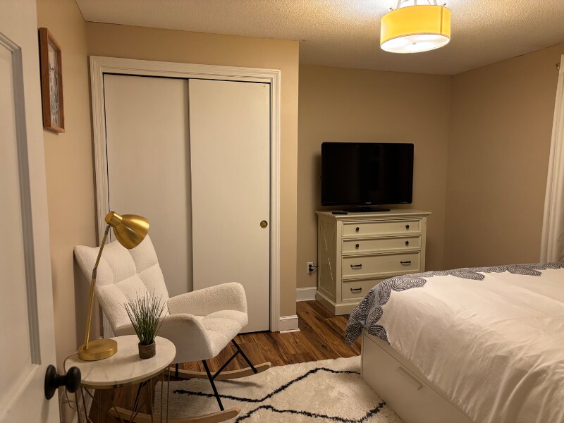 Property Id: 2255290 This is a one-story apartment for one person, (open to two people with additional $200 monthly fee) with utilities included and a simple layout. The bedroom has a queen-size bed, a closet, and a dresser. All of the furniture has been updated and is in excellent condition. The bathroom is fully equipped and has a walk-in shower with a rain shower head, a single sink with a mirror, and a clean, modern look. The kitchen has an open modular layout with natural light and updated appliances. It includes a block counter, coffee maker, toaster, and full kitchen for cooking meals. The dining area is part of the kitchen and has a four-person space. Right off the kitchen is the living room, with a cozy couch, a coffee table, a smart TV offering Netflix, Prime Video, Hulu, Disney, Peacock included, and some lovely artwork on the walls. The space feels warm and lived in, with good natural light during the day, looking out to a serene peaceful neighborhood. A dedicated home office setup is tucked into the living room, with a proper desk, a good chair, and lighting that makes working from home easy. The floors throughout the unit are wood, giving everything a clean and polished feel. Outside, access to a backyard with a comfortable seating area is perfect for getting some fresh air. The laundry is shared and located in the building's laundry room, and driveway parking is available. Both train access and highway routes are nearby, so getting around is simple whether you're headed into Boston or just across town. Enjoy the perfect blend of convenience and charm with shopping, dining, and entertainment just minutes away. Main Street's boutiques and restaurants are only 1.3 miles from your door, while Market Street, known for its amazing shopping, Great Restaurants and Bars, Starbucks, eateries and lively town events, is just 1.6 miles away. Lake Quannapowitt, known for its scenic walking paths and community events, is 2.2 miles away. Located only 14 miles from Boston