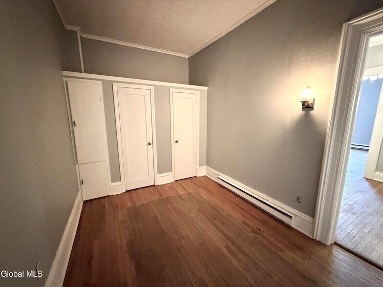 Spacious and updated 2nd-floor flat located in the heart of downtown Fonda, NY, featuring a large primary bedroom with access to a private back porch, plus a versatile dressing room or home office with double cedar closets that could serve as a second bedroom. The unit offers an eat-in kitchen with brand-new stainless steel appliances, a generously sized living room with oversized windows providing abundant natural light, and new lighting and ceiling fans throughout. Washer and dryer hookups are available. Electric heat. Tenant is responsible for all utilities. One-year lease required with approved background check; first month's rent and security deposit due at signing. Conveniently located near local shops, dining, and amenities.