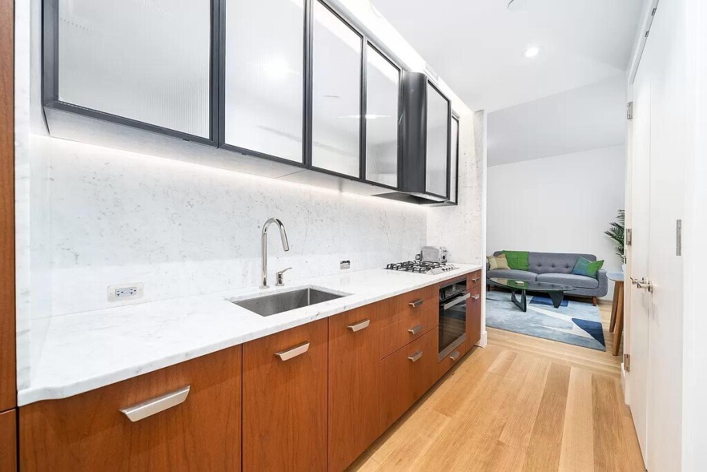 Enjoy this spacious FLEX 1 in Greenwich West, Nestled betweenthe vibrant neighborhoods of Soho, Tribeca, and the West Village with sophisticated interiors designed bythe masterful architect Sbastien Segers. Enter to a gracious kitchen equipped with top-of-the-line Miele appliances, Carrara Marble countertops, and cabinets crafted from walnut, metal lacquer, and fluted mirrors. The bedroom and living room face North towards the buildings courtyard designed by internationally celebrated artist and botanist Patrick Blanc. The bathroom feels like a peaceful sanctuary wrapped in Carrara Marble and adorned with polished nickel fixtures. Additional features include an in-unit washer/dryer, a deep and expansive marble window sill with Art Deco inspiration, wide-plank European white oak floors, gently curved hand-plastered interior walls, and engraved doors with customized detailing. a 24/7 doorman, a live-in resident manager, package room, bicycle storage with direct sidewalk access, a supplemental laundry room, and automated self-parking garage and extra storage available for an additional fee. The expansive rooftop terrace, residents lounge, entertainment room, and fitness center all offer a casual elegance that feels warm and inviting. The building is conveniently located within walking distance to many major subway lines, Hudson River Park, and a plethora of dining and entertainment.