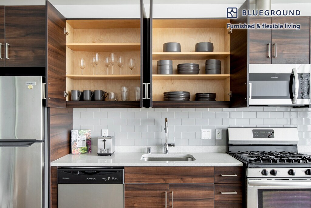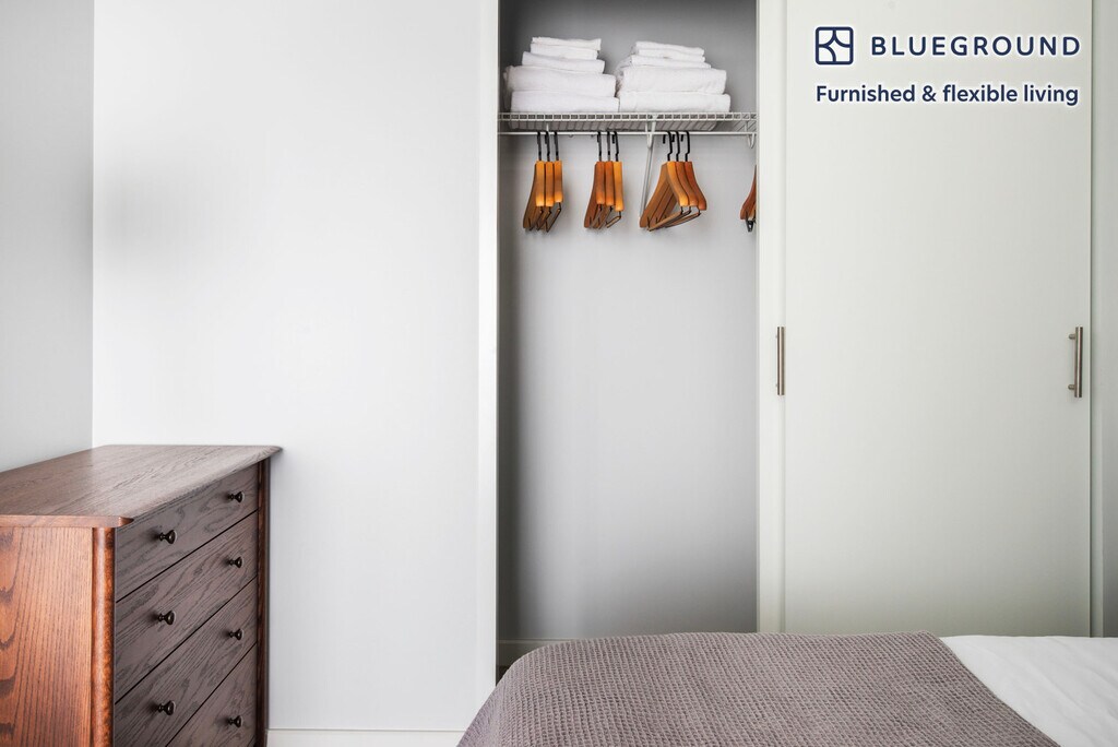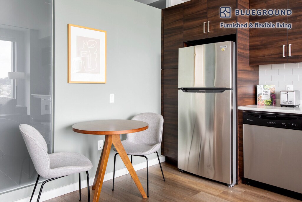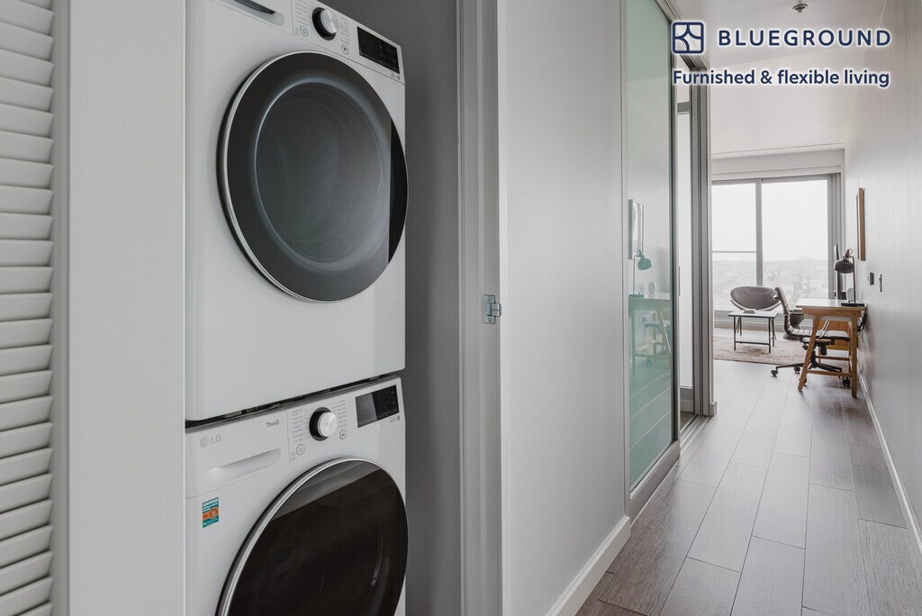 Feel at home wherever you choose to live with Blueground. You’ll love this cozy Civic Center furnished one bedroom apartment with its modern decor, fully equipped kitchen, and charming living room. Ideally located, you’re close to all the best that San Francisco has to offer! (ID #SFO1726) The advertised rate of $2,820/month is the lowest available price, based on a 1 month(s) and 17 day(s) stay with a move-in date of December 20, 2025. If you’re looking for a 1-year stay, the rate is $3,810/month. Rates vary depending on the duration of stay, season, and other parameters. For exact pricing and additional pricing components, please visit our website and enter your desired move-in and move-out dates. The rate is applicable when billed upfront; it can be higher if billed in multiple payments. Brokers are welcome to reach out. Were you looking for an unfurnished lease? Try Blueground instead and upgrade from unfurnished to furnished living: - Furnished at rates comparable to unfurnished - No setup or furniture costs - save thousands - Move-in ready - save time, just bring your suitcase Designed with you in mind Thoughtfully designed with bespoke finishes, modern furnishings, and a fully equipped kitchen, you’ll enjoy that “I’m home” feeling with this Blueground apartment. Whether you’re lounging in your pretty living room streaming the latest and greatest entertainment on the smart TV or premium wireless speaker, or getting some well-earned rest on the superior quality mattress with luxury linens, you’ll fall in love with everything this Civic Center apartment has to offer. This apartment also offers in-apartment laundry. Sleeping arrangements King Bed, 70.8in/180cm Amenities Building amenities unique to this one bedroom apartment include an on-site: - Basketball Court - Doorman - Dryer - Elevator - Swimming pool - Washing machine - Lounge - Library - Parking - Pets allowed - Rooftop BBQ Arrival and ongoing support The entire apartment is yours to enjoy! Throughout your stay, you’ll have access to our Client Experience team through the Blueground App. You can schedule additional cleanings, submit maintenance requests, and view our neighborhood recommendations with just a few taps. We’ll share all details upon confirmation of your stay. Ideally Located This furnished apartment is in the Civic Center. The area contains many of the city’s largest government and cultural institutions. It is home to San Francisco’s City Hall and is surrounded by a number of classical buildings. The Supreme Court of California, the Asian Art Museum and the library are all located here. It has two large plazas (Civic Center Plaza and United Nations Plaza) and is the main site for any culturally significant activity. Located in the heart of the city, the SFO Airport is just 25 minutes by car or 45 minutes by BART. Other things to note Building amenities may have an extra cost. This Blueground apartment has flexible lease options, allowing you to book it for one month, a year, or more. Pets are welcome, though weight limits and breed restrictions apply and may incur fees. Parking is offered based on availability and is subject to a fee. We take great pride in ensuring every photo displayed is shot in our own units with our actual furnishings. That said, we regularly refresh our decor and furniture arrangement, which may differ from what’s pictured.
