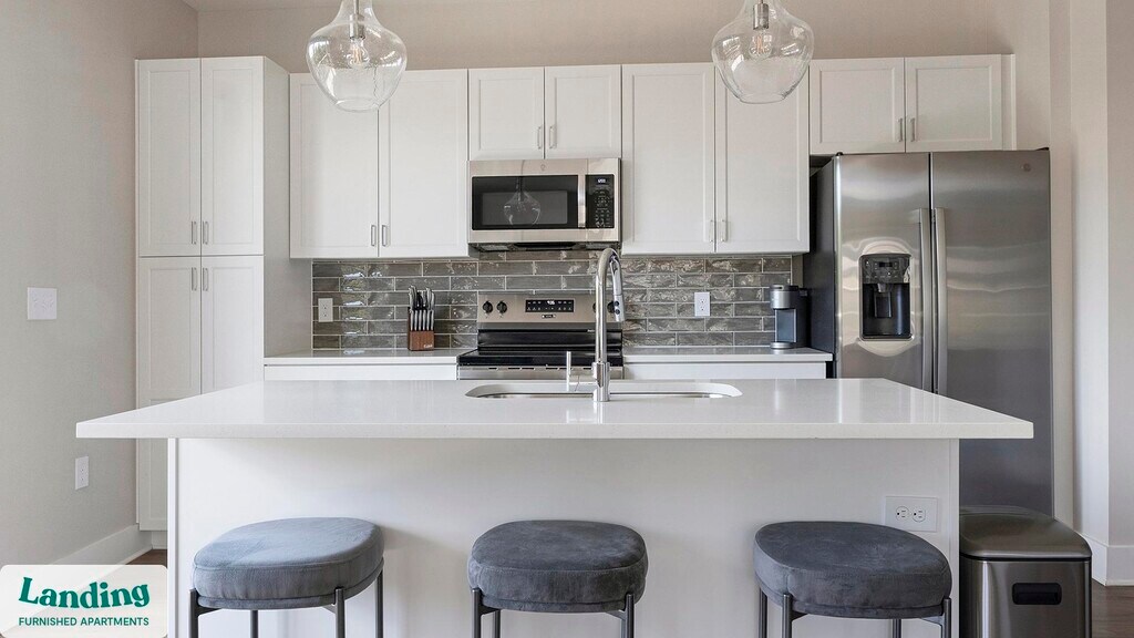 Landing offers flexible lease terms from weeks to months. Please always visit our website or contact us for the latest pricing & availability. Stay longer, save more: 6-Month Minimum base rent: starts at $2295/mo 12-Month Minimum base rent: starts at $2038/mo Landing offers flexible leases across a network of over 35,000 fully-furnished apartments throughout 375+ cities so you can rent on your terms, practically anywhere, and avoid the hassle of paying deposits or application fees. Visit to learn about all the benefits of a Landing membership, see our competitive up-to-date pricing, explore available apartments, take virtual tours, and make reservations online without jumping through traditional rental hoops. Landing's apartments at Livano Oakwood are designed for comfortable, easy living, with the ability to stay as long as you like. Experience living with Landing Every apartment is outfitted with all the modern essentials including: custom-designed furnishings, a fully-equipped kitchen with deluxe stainless steel appliances, a gourmet coffee maker, premium linens, Smart TVs, and incredibly fast, reliable internet for working from home. When you live with Landing, you'll enjoy a hassle-free experience with the added benefit of 24/7 access to our dedicated member experience team. Some of the nitty-gritty: a background check and proof of income are required; we're completely smoke-free; bundled utility packages and pricing vary based on length of stay; pet-friendly options available; listed price reflects a 12-month minimum stay.