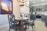 Feel at home in 'Pasadena Paradise,' a 2-bedroom, 2-bath apartment nestled within the Park Centre Casitas community. Please note that stairs are required for entry. This 1,047 sq ft apartment features updated furnishings, 2 flat-screen TVs with local channels, a decorative fireplace, a dining table, ceiling fans, board games, cards, books, and tour guide pamphlets. The well-stocked kitchen has updated appliances, a double basin sink, an island, a coffee maker, a coffee grinder, a blender, a hot water pot, a Crockpot, a toaster, a toaster oven, complimentary spices, cooking basics, dishware, flatware, and an ice maker. Linens, towels, complimentary toiletries, a hair dryer, and an iron/board are provided. Guests have access to the community pool and hot tub. The veranda features dining tables and lounge chairs. Community parking is available in the parking lot; there is no garage parking. Conveniently located minutes from Spring Training, golf courses, and the Mesa Arts Center, this apartment is the perfect Mesa escape. Quiet hours are observed at 10:00 PM. This property features 3 exterior security cameras: one overlooking the front door facing the outdoor entry, one on the balcony facing the patio, and one in the garage facing outward. The cameras face outward and do not look into interior spaces. Cameras 1 and 2 actively record video, and Camera 3 has the ability to actively stream video. [SI]
