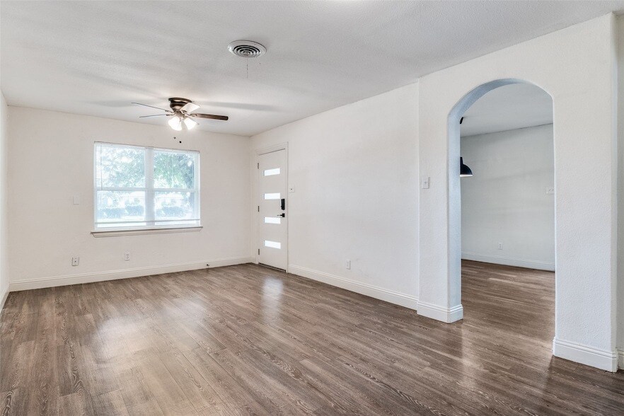 Duplex unit for lease. Welcome to 10019 Olmos Drive a unique opportunity in the heart of the Casa Linda Lawn neighborhood. This charming full duplex offers a rare house hack opportunity, with one side already occupied, providing an ideal setup for savvy homeowners or investors.Step into this beautifully remodeled duplex featuring 2 units.. each with 2 bedrooms and 1 full bath. The units boast fresh laminate flooring, new fixtures, and a fresh coat of paint. With 980square feet of living space in each unit, there s room for everyone to enjoy.The property also includes a convenient one-car garage and sits on a lush 0.17-acre lot, perfect for outdoor activities or future landscaping dreams. Located just 15 minutes from downtown Dallas and near major highways, this home offers the perfect blend of suburban tranquility and city accessibility. Minutes from Dallas Arboretum and Casa Linda Village.