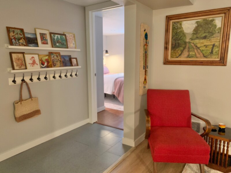 ID de propiedad: 484001 El es el apartamento con sótano de 2 dormitorios y 1 baño más bonito. Este hogar tiene un concepto abierto que permite una vida luminosa y aireada con luces de techo atenuables y muchas lámparas para un ambiente agradable. La cocina está equipada con una máquina Nespresso y todos los utensilios de cocina básicos necesarios para disfrutar de comidas caseras. Cada dormitorio está equipado con la cama Queen más acogedora. Este es un apartamento en el sótano, pero es muy privado. Ingrese a la casa a través de la puerta del lateral de la casa, que es exclusivamente suya y está ubicada justo al lado de la entrada. Baje por las escaleras y diríjase a la lavandería/centro de su apartamento. Tanto la puerta exterior como la interior son privadas y están equipadas con bloqueo de teclado.