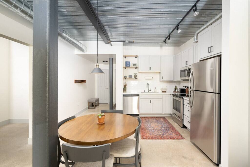 Feel at home in this apartment situated in one of Milwaukee's most historic buildings, showcasing architectural features such as original Cream City brick, exposed beams, arched windows, and city skyline views. The space comfortably sleeps four. This apartment features in-unit laundry, a smart TV with Chromecast, a fitness center, a theater, work/study booths, and a game lounge with darts, pool, and bags. The living room sectional may serve as additional sleeping space, however please note it does not have a pull-out bed. This listing includes one free parking space in a secured garage one block away (the Brewery Parking Structure). Additional parking is available in the same garage and costs $25/day (and increases during events). Metered street parking is available throughout the neighborhood; keep in mind Milwaukee requires anyone parking on the street overnight to register for a permit which you can request for free up to 3 nights by calling the city and requesting one. The garage has a vertical clearance of 7'2", which is enough for most consumer vehicles but may not accommodate larger vehicles such as RVs or full-size vans. Located in the heart of the historic brewery district and connected to the iconic Pabst sign spanning Juneau Ave, this apartment is a 5-minute walk to Fiserv Forum down cobblestone streets and a 5-minute drive to Downtown, Third Ward, and Marquette University. Smoking of any kind is prohibited anywhere on the premises, including outdoor spaces, and will incur a $500 minimum fine, with additional fees for remediation potentially applying. Quiet time is after 10pm. Guests must cover the cost to replace unreturned access devices such as keys, key cards, fobs, or parking passes. Bookings by local guests are prohibited at this property. Guests who violate house rules are liable for any associated damages, fees, or expenses and may be removed from the property without refund. Includes self check-in, high-speed Wi-Fi, a dedicated workspace, an iron, and a Keurig. [SI]