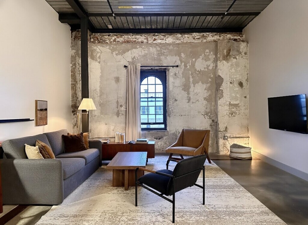 Feel at home in this apartment situated in one of Milwaukee's most historic buildings, showcasing architectural features such as original Cream City brick, exposed beams, arched windows, and city skyline views. This apartment comfortably sleeps two with a comfy queen bed in the bedroom. The living room sofa may serve as a sleeping area, however please note it does not have a pull-out bed. Amenities include self check-in, in-unit laundry, high-speed Wi-Fi, a smart TV with Chromecast, a fitness center, theater, work/study booths, and a game lounge with darts, pool, and cornhole. This listing includes one free parking space in a secured garage one block away (the Brewery Parking Structure). Additional parking is available in the same garage and costs ~$25/day (and increases during events). Metered street parking is available throughout the neighborhood. The garage has a vertical clearance of 7'2" which is enough for most consumer vehicles but may not accommodate larger vehicles such as RVs or full-size vans. Located in the heart of the historic brewery district and connected to the iconic Pabst sign spanning Juneau Ave, this apartment is a 5-minute walk to Fiserv Forum down cobblestone streets and a 5-minute drive to Downtown, Third Ward, and Marquette University. There is a zero-tolerance policy for parties or gatherings. No smoking of any kind is allowed anywhere on the premises, including outdoor spaces, and a $500 minimum fine will be assessed, with additional fees for remediation potentially applying. Quiet time is after 10pm. Guests must cover the cost to replace unreturned access devices such as keys, key cards, fobs, or parking passes. Guests take full responsibility for loss, injury, or damages that occur on the premises and its facilities. Includes a dedicated workspace. [SI]
