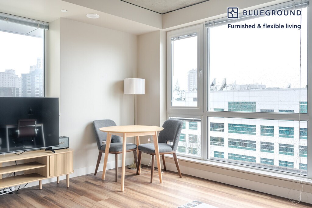 Photos Coming Soon These sample photos are meant to give you a sense of Blueground’s design style. Layout and furniture are subject to change. This apartment will be ready by the date indicated. Be the first to rent! Discover the best of Seattle, with this studio apartment in South Lake Union. It’ll be easy to simply show up and start living in this fashionably furnished apartment with its fully equipped kitchen, lovely living room, and our dedicated, on-the-ground support. (ID #SEA3456A) The advertised rate of $2,390/month is the lowest available price, based on a 12 month(s) stay with a move-in date of December 25, 2025. Rates vary depending on the duration of stay, season, and other parameters. For exact pricing and additional pricing components, please visit our website and enter your desired move-in and move-out dates. The rate is applicable when billed upfront; it can be higher if billed in multiple payments. Brokers are welcome to reach out. Were you looking for an unfurnished lease? Try Blueground instead and upgrade from unfurnished to furnished living: - Furnished at rates comparable to unfurnished - No setup or furniture costs - save thousands - Move-in ready - save time, just bring your suitcase Designed with you in mind Gorgeous furniture, fully equipped kitchen, smart TV, and a premium wireless speaker are just a few of the amenities you’ll find inside this studio apartment. Ideally located in Seattle, you’ll find a lot to love outside as well. When you’re ready to relax, you’ll be happy to discover every Blueground bedroom comes with superior quality mattresses, luxury linens, and cozy towels. We handle everything so you can simply show up and start living. This apartment also offers in-apartment laundry. Amenities Building amenities unique to this studio apartment include an on-site: - Dryer - Washing machine - Parking Arrival and ongoing support The entire apartment is yours to enjoy! Throughout your stay, you’ll have access to our Client Experience team through the Blueground App. You can schedule additional cleanings, submit maintenance requests, and view our neighborhood recommendations with just a few taps. We’ll share all details upon confirmation of your stay. Ideally Located This furnished apartment is situated in South Lake Union, a hub for Amazon and the Seattle Times as well as the entire biotech industry. It’s constantly buzzing thanks to the numerous bars, restaurants and food trucks. In Lake Union Park, along the water sits the Museum of History & Industry which highlights the city’s history as well as business and innovation. Locals often head out to the lake for boating and paddle boarding. This neighborhood is also the home of Denny Park, which is the oldest green space in the city. To access other parts of the city from here, simply hop on the streetcar. Other things to note This Blueground apartment has flexible lease options, allowing you to book it for twelve months, a year, or more. Parking is offered based on availability and is subject to a fee. Please keep in mind that this is a walk up building. [SI]