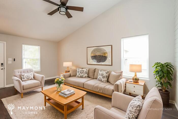 MOVE-IN READY This home is move-in ready. Schedule your tour now or start your application today. Monthly Recurring Fees: $25.00 - Smart Home $10.95 - Utility Management Located at 101 Tweed Court in Summerville, SC, this 4-bedroom, 2-bathroom home offers 1,288 square feet of single-story living designed for comfort and ease. Fresh interior paint enhances the natural light throughout the home, creating a welcoming atmosphere from the moment you step inside. The living room anchors the layout with LVP flooring, vaulted ceilings, and a ceiling fan that adds both scale and airflow. From here, the space flows into the kitchen and dining area, keeping the layout connected and functional. The kitchen features white cabinetry, solid-surface countertops, stainless steel appliances, and generous prep space, while pendant lighting helps define the dining area without closing it off. All four bedrooms are arranged along the same level, offering flexibility for a variety of uses. Each bedroom is finished with LVP flooring and ceiling fans, maintaining continuity throughout the home. The primary bedroom includes an attached bathroom with a tub-shower combination and updated fixtures, while the secondary bathroom mirrors the same clean, durable design. Out back, the yard provides open green space bordered by mature trees, offering a quiet outdoor setting ready to be enjoyed. Situated in Summerville, this home offers convenient access to downtown Summerville, local shopping and dining, and is approximately 30 minutes from Charleston, making commuting and weekend outings easy. With its refreshed interiors, efficient layout, and desirable location, this home is a strong option for everyday living. Apply Now! *Maymont Homes provides residents with convenient solutions, including simplified utility billing and flexible rent payment options. Contact us for more details. This information is deemed reliable, but not guaranteed. All measurements are approximate. Actual product and home specifications may vary in dimension or detail. Images are for representational purposes only. Some programs and services may not be available in all market areas. Prices and availability are subject to change without notice. Advertised rent prices do not include the required application fee, the partially refundable reservation fee (due upon application approval), or the mandatory monthly utility management fee (in select market areas.) Residents must maintain renters insurance as specified in their lease. If third-party renters insurance is not provided, residents will be automatically enrolled in our Master Insurance Policy for a fee. Select homes may be located in communities that require a monthly fee for community-specific amenities or services. For complete details, please contact a company leasing representative. Equal Housing Opportunity. Estimated availability date is subject to change based on construction timelines and move-out confirmation. This property allows self guided viewing without an appointment. Contact for details.
