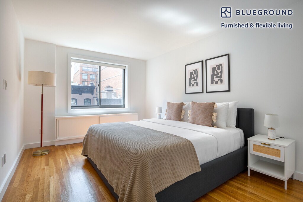 Show up and start living from day one in New York with this cozy one bedroom Blueground apartment. You’ll love coming home to this thoughtfully furnished, beautifully designed, and fully equipped Chelsea home. (ID #NYC1224) The advertised rate of $9,380/month is the lowest available price, based on a 12 month(s) stay with a move-in date of March 2, 2026. Rates vary depending on the duration of stay, season, and other parameters. For exact pricing and additional pricing components, please visit our website and enter your desired move-in and move-out dates. The rate is applicable when billed upfront; it can be higher if billed in multiple payments. Brokers are welcome to reach out. Were you looking for an unfurnished lease? Try Blueground instead and upgrade from unfurnished to furnished living: - Furnished at rates comparable to unfurnished - No setup or furniture costs - save thousands - Move-in ready - save time, just bring your suitcase Designed with you in mind Thoughtfully designed with bespoke finishes, modern furnishings, and a fully equipped kitchen, you’ll enjoy that “I’m home” feeling with this Blueground apartment. Whether you’re lounging in your stylish living room streaming the latest and greatest entertainment on the smart TV or premium wireless speaker, or getting some well-earned rest on the superior quality mattress with luxury linens, you’ll fall in love with everything this Chelsea apartment has to offer. This apartment also offers in-apartment laundry. Sleeping arrangements King Bed, 70.8in/180cm Amenities Building amenities unique to this one bedroom apartment include an on-site: - Doorman - Dryer - Elevator - Washing machine - Lounge - Pets allowed Arrival and ongoing support The entire apartment is yours to enjoy! Throughout your stay, you’ll have access to our Client Experience team through the Blueground App. You can schedule additional cleanings, submit maintenance requests, and view our neighborhood recommendations with just a few taps. We’ll share all details upon confirmation of your stay. Ideally Located This furnished apartment is located in Chelsea, one of the city’s trendiest neighborhoods. Considered an artistic and creative center, there are over 200 galleries to discover. Ranging from classical to experimental art, there is something for every taste. Take a stroll through the High Line park for a unique perspective and a breath of fresh air. What used to be a railroad, now provides stunning views of Manhattan’s architecture. This area is also known for its various fine dining options and hip nightlife. From Chelsea, JFK Airport is just 30 minutes away by car. Other things to note Building amenities may have an extra cost. This Blueground apartment has flexible lease options, allowing you to book it for one month, a year, or more. Pets are welcome, though weight limits and breed restrictions apply and may incur fees. Brokes CYOF. We take great pride in ensuring every photo displayed is shot in our own units with our actual furnishings. That said, we regularly refresh our decor and furniture arrangement, which may differ from what’s pictured. [SI]