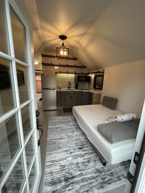 Property Id: 1628578 Dayton Place - New furnished studio available in Greenwood neighborhood, N. Seattle. Fully furnished - appliances, amenities, washer/dryer in unit, French Doors. Code entry for key access. Centrally located. Quiet neighborhood, great walkability. Close by car to: UW NW Hospital (6m), Northgate light rail (10m), bus transit lines E, 5, 40 (4/1/3 blk), Kraken Arena (10m), Carkeek Park Beach (10m). Near Ballard, Crown Hill, & Northgate neighborhoods. Studio offers 3/4 bath, in unit washer/dryer, new appliances/ kitchenette, 3/4 size fridge, new couch/bed combo, custom built shelving, closet, dresser, room darkening shades, outdoor storage. Fully fenced property, private patio adjacent to main home. Studio has sensitive sewer system for disposal. Items labeled flushable must be used with consideration. Anything other than toilet paper will cause disruption to system. We want the best experience for our clientele. Basic wi-fi, garbage/ recycle/ compost / water/sewer included. Tenant pays electricity & higher speed internet. Adjacent to main house. Street Parking available 1-2 cars. Credit score, background, RTI ratio check required. No smoking on property or $250 ozone machine charge will apply. Feel free to use our common area next to the front patio with firepit, table/chairs. We are a stay-at-home family living on property adjacent to unit. We are always available by text or phone to help you with anything you need. Whether you are visiting Seattle for the first time, short or long, Keywords: mother-in-law apartment, studio, cottage, fully furnished, tiny home, air-conditioning, tiny home, French doors