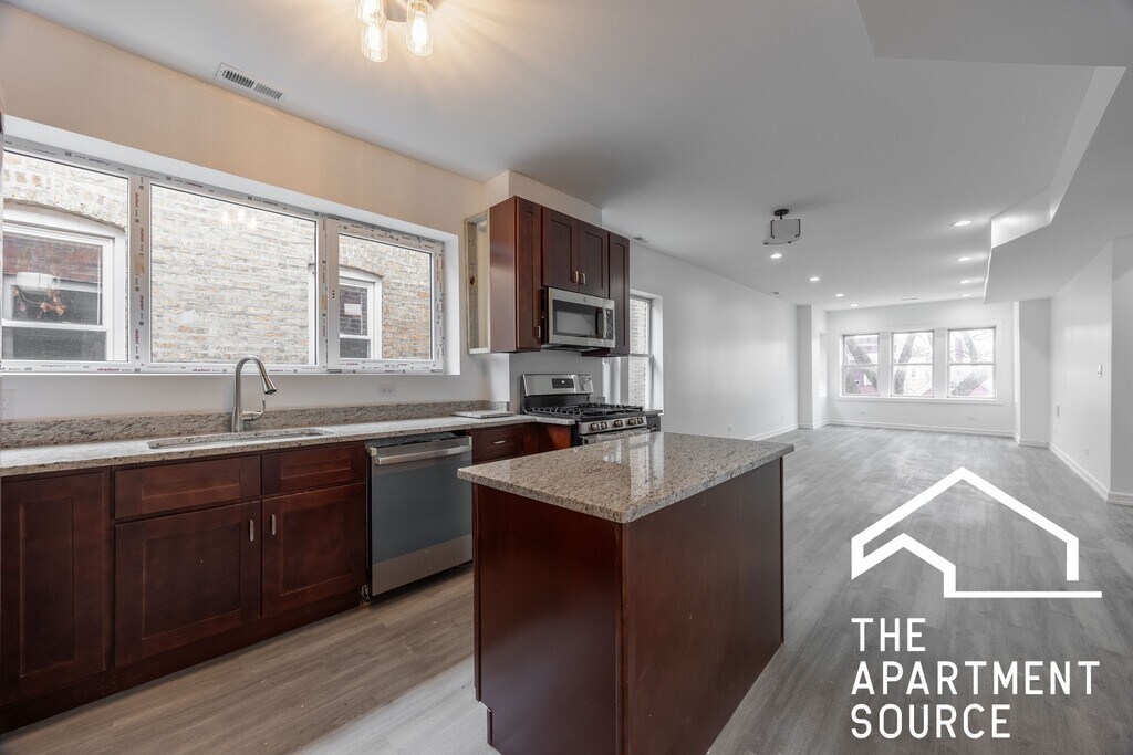 Fully renovated 3-bedroom, 1.5-bath apartment available now in Humboldt Park. This bright and modern home features a completely updated interior with brand-new flooring, fresh paint, and contemporary lighting throughout. The sleek kitchen includes new cabinetry, countertops, and stainless steel appliances, dishwasher, microwave, while both bathrooms have been fully remodeled with stylish tilework, modern fixtures, and updated vanities. All three bedrooms offer generous space and excellent natural light. Additional features include central air conditioning, in-unit laundry, sun deck, uncovered off-street parking (for rent), and modern finishes throughout. Located on a quiet residential block with convenient access to Humboldt Park, public transportation, neighborhood shops, and local dining. Cats and small dogs negotiable with one time nonrefundable fee per pet. Bedroom dimensions 11.5 x 7.5ft 12 x 7.9 ft 10.3 x 6.5 ft. Disclaimer: The Apartment Source Call or text: 773.404.99