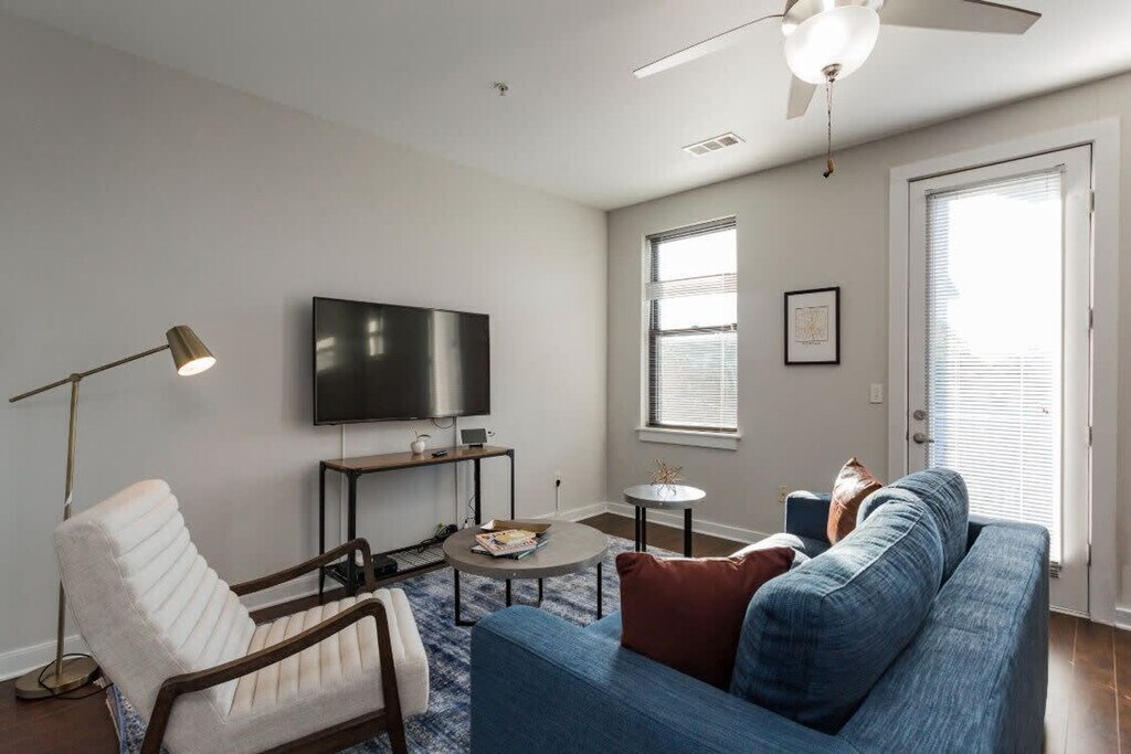 The advertised rate of $3,006/month is the lowest available price, based on a 30 day(s) stay with a move-in date of July 1, 2026. Rates vary depending on the duration of stay, season, and other parameters. For exact pricing and additional pricing components, please visit our website and enter your desired move-in and move-out dates. The rate is applicable when billed upfront; it can be higher if billed in multiple payments. Feel at home in this locally inspired condo in Nashville's Music Row and Midtown. This wheelchair-accessible studio is perfect for leisure, business, and family. This apartment has all the amenities necessary to enjoy your stay and all the comforts of home, including a fully equipped kitchen, 100mbps+ internet, modern decor, and a Smart-TV with streaming apps installed. There is also a garden area to lounge and relax with friends. Enjoy complimentary coffee and one complimentary parking spot. There is also a community garden with a cabana, 2 outdoor TVs, a gas grill, and a fire pit. Additional services to enhance your stay, such as mid-stay cleanings and early check-in/late checkout (when available), can be arranged for an additional fee. There are many places within walking distance of the building in Music Row. Old Glory and Bella Napoli are some local favorites. Midtown is within walking distance, and Lyft/Uber to Broadway (Downtown Nashville) and the famous Honky Tonks are only $5-7 one-way. This is a smoke-free environment, and any sign of smoking is a violation of the stay agreement, which may result in immediate termination and recovery fees beginning at $500. Guests must agree to not disturb neighbors at any time during the stay and must observe quiet hours from 9pm-8am each day. There is a $500 penalty for removing smoke detectors and a $200 penalty for lost key fobs. No outside guests are allowed without permission. Check-in is at 4 PM, and check-out is at 11 AM (with a $75/hr late fee). A valid photo ID is required to complete the booking. A maximum of 2 pets (40lbs combined, excluding Pit Bulls and Bull Mastiffs or similar breeds) are allowed, with an additional pet fee ranging from $100-300 based on stay length. Weapons and drugs are not allowed, and police will be called for violations. Guests must be at least 22 years old to book (except students/interns). [SI]