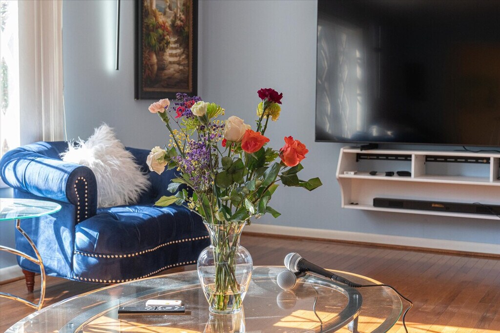 Gather your crew and feel at home in this entertainment-packed home in High Point! Perfect for family vacations, reunions, or celebrations, this spacious retreat sleeps 16 and features a game room, karaoke, and more, all designed for nonstop fun and relaxation. This 3,800 sq ft private estate sits on 1.7 acres. The kitchen is fully stocked for at-home baking and cooking and includes cooking oils, seasoning essentials, a drip coffee maker, kettle, blender, rice cooker, stand mixer, waffle maker, toaster, an abundance of dishware, glassware, silverware (including children’s), a full-sized fridge and freezer, an induction cooktop, and a dishwasher. The dining room table seats 10, and there is also a breakfast table that seats 6, as well as high chairs. The living room features a massive smart TV with access to Netflix, Prime Video, Disney Plus, Hulu, and HBO, a sound system, an upright wooden piano, a luxurious velvet couch, and a bar counter with high chairs. The game/recreation room in the basement includes a massive smart TV with access to Netflix, Prime Video, Disney Plus, Hulu, and HBO, a sound system, an Xbox gaming console, ping pong, a pool table, air hockey, a Dragon’s Lair arcade game, a private kitchenette, a dishwasher and sink, a microwave, a fireplace, a large sectional leather couch, an L-shaped couch, and a bar counter with high chairs. Outside, enjoy the fire pit with seating, a children’s swing, a 6 ft deep elegant swimming pool (open during Summer), poolside lounge chairs, and a poolhouse with pool toys and life vests. The 2nd-floor porch features a screened porch with access to the deck, a comfortable outdoor sofa, outdoor dining for 10, a Blackstone propane griddle station, a smaller propane grill, an outdoor sink, and an extra table. Private chef and room service options are available with advance notice; message us for pricing and availability. Nearby attractions include DeBeen Espresso (4 min), Joy Bar Coffee Co. (5 min), Panera Bread (6 min), Starbucks (6 min), Dot & Pearl’s Coffee & Bakery (7 min), High Point University / Qubein Center (8 min), Penny Path Café & Crêpe Shop (9 min), Lil’s Coffee Bar (10 min), High Point City Lake Park (10 min), Piedmont Environmental Center (10 min), High Point Museum & Historical Park (11 min), High Point Theatre / Theatre Art Galleries (12 min), Bienenstock Furniture Library (12 min), Market Square Showrooms (12 min), Congdon Yards / COHAB Space (13 min), O’Henry Hotel / Stock + Grain Food Hall (14 min), Magnolia Blue Southern Kitchen (14 min), Odeh’s Mediterranean Kitchen (15 min), The Biscuit Factory (15 min), High Point Community Theatre (15 min), A.J. Simeon Stadium (15 min), Uptown Suburbs Historic District (16 min), Furnitureland South & Ashley Interiors (20 min), North Elm Street Galleries & Shops (20 min), Greensboro/Winston-Salem Attractions (30 min), and DuPont State Forest (2 hrs). [SI]