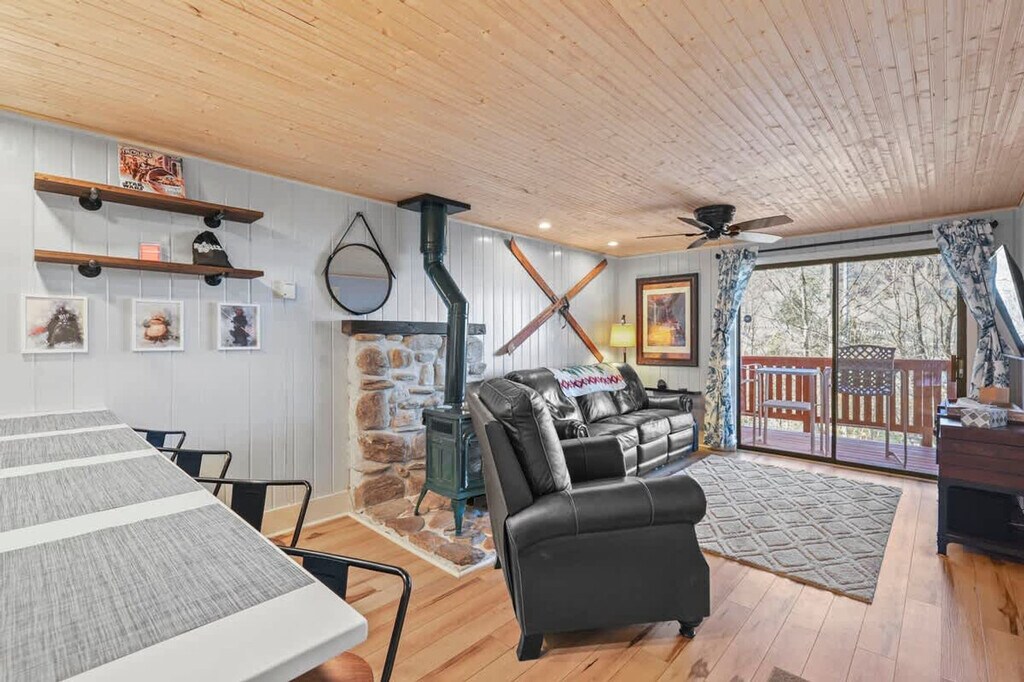 Welcome to your private ski getaway nestled in the serene setting of Beech Mountain, NC. This charming cabin offers a fully equipped kitchen with a dining area, a cozy living room featuring a smart TV and gas stove, and two comfortable bedrooms with high-quality bedding. Enjoy the natural surroundings from the outdoor deck with a seating area, perfect for unwinding after a day of adventure. Step inside and feel at home in a space designed for comfort and enjoyment. The fully equipped kitchen opens onto an inviting living room, setting the tone for memorable evenings. Relax on the comfortable sofa, enjoy movie nights on the smart TV, or warm up by the gas stove. The kitchen features a microwave, stove, oven, refrigerator/freezer, coffee maker, dishwasher, and a kitchen bar with seating for four, making it feel like your personal tavern. Early check-in and late check-out are available subject to availability with a $25 per hour fee. Reach out to inquire. Situated in the small vacation town of Beech Mountain, NC, this cabin offers a remote location with small-town charm. The area provides a wonderful ambiance for relaxation and refreshment, with plenty of attractions and activities such as skiing, snowboarding, snow tubing, zip-lining, mountain biking, and more. Both Beech Mountain and Banner Elk offer fine dining and shopping at your fingertips. A 4WD or AWD vehicle is recommended for access, especially during winter months. Smoking and pets are not allowed on the property. People other than those in the guest's party designated in the reservation may not stay overnight. Exterior cameras are present for security. The property does not have air conditioning, but the mountain breezes provide natural cooling. Check-in and check-out times are subject to availability and may incur additional fees. A rental agreement is required as per North Carolina Chapter 42A Vacation Rental Act.