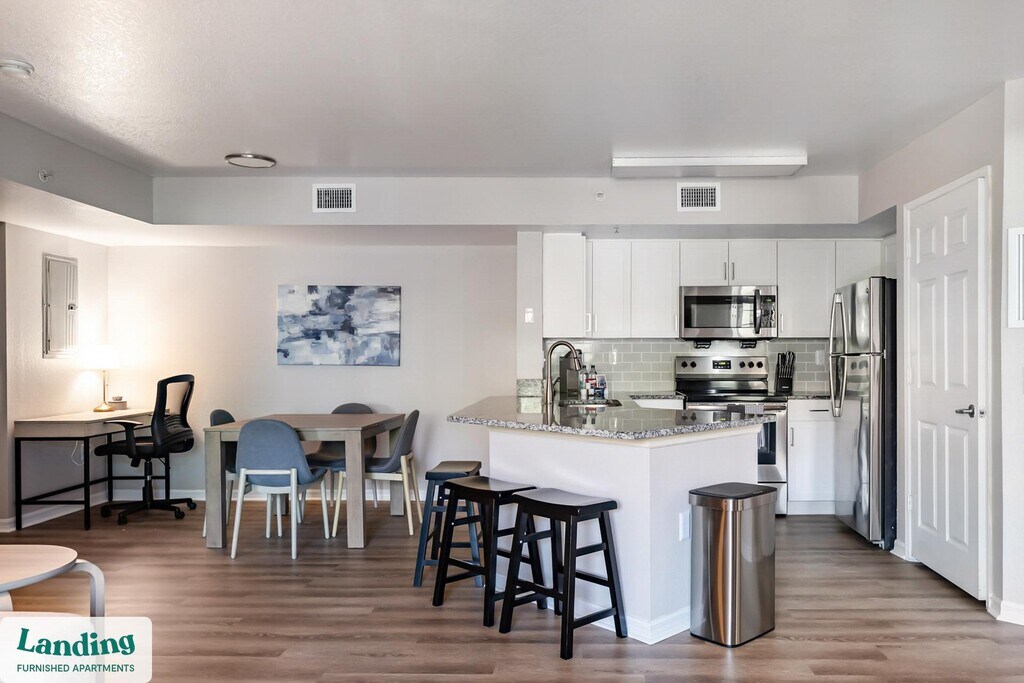 Landing offers flexible lease terms from weeks to months. Please always visit our website or contact us for the latest pricing & availability. Stay longer, save more: 6-Month Minimum base rent: starts at $2446/mo 12-Month Minimum base rent: starts at $1996/mo Landing offers flexible leases across a network of over 35,000 fully-furnished apartments throughout 375+ cities so you can rent on your terms, practically anywhere, and avoid the hassle of paying deposits or application fees. Visit to learn about all the benefits of a Landing membership, see our competitive up-to-date pricing, explore available apartments, take virtual tours, and make reservations online without jumping through traditional rental hoops. Landing's apartments at Canterbury Cove are designed for comfortable, easy living, with the ability to stay as long as you like. Experience living with Landing Every apartment is outfitted with all the modern essentials including: custom-designed furnishings, a fully-equipped kitchen with deluxe stainless steel appliances, a gourmet coffee maker, premium linens, Smart TVs, and incredibly fast, reliable internet for working from home. When you live with Landing, you'll enjoy a hassle-free experience with the added benefit of 24/7 access to our dedicated member experience team. Some of the nitty-gritty: a background check and proof of income are required; we're completely smoke-free; bundled utility packages and pricing vary based on length of stay; pet-friendly options available; listed price reflects a 12-month minimum stay.