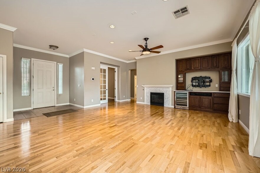 Prepare to be Amazed! Cool like the other side of the pillow contemporary home in a gated subdivision in desirable Skye Canyon. Community pool, workout facilities, parks and unrivaled outdoor living here. and Cul-de-sac location too! Open and spacious living area down includes dining, living, and island kitchen plus den. Love the modern lighting and even choose your color! Inside wall cord system ready for your TV too! Extensive tile floors through out the first floor. Front den could be office, workout room, hobby place. Island kitchen has stainless appliances too. Upstairs you'll find all bedrooms. The primary has remote controlled ceiling fan and sunny windows. Primary bath offers double sink vanity with lots of counter space, walk-in closet, and a large shower. Secondary bedrooms have plush carpet and overhead lighting. Laundry is up too - both washer & dryer are included.