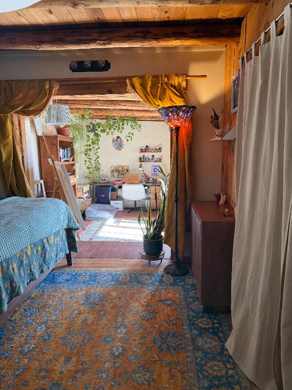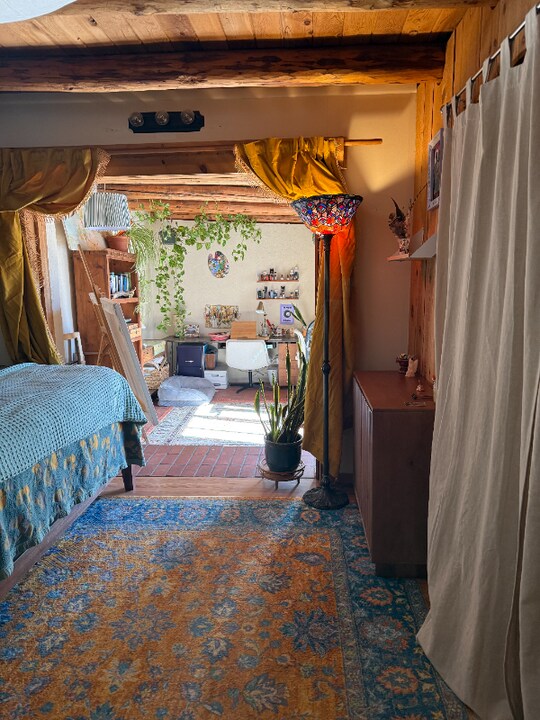 Property Id: 2374619 Experience true Santa Fe living in this light-filled 2-bedroom, 1-bathroom home at 103 Caminito Montano. This residence perfectly captures the local aesthetic with stunning Saltillo tile floors, exposed wood-beam (viga) ceilings, and an inviting fireplace that anchors the living space. The versatile layout includes a bright sunroom/studio space—perfect for an artist’s retreat or home office—overlooking your expansive, private fenced yard. Located in a prime, walkable neighborhood just blocks from the Santa Fe Co-op Market and 3 minutes from the Downtown Plaza, this home offers a rare combination of privacy and urban convenience.