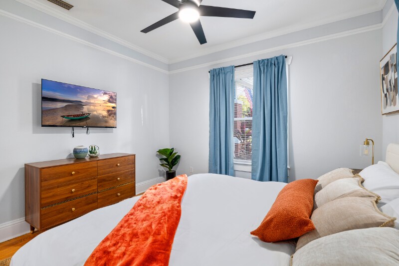 Property Id: 2299300 Professionally designed interior with warm wood floors and lots of natural light Flexible layout: 2 bedrooms plus option to add a queen and extra bed in the sunroom on request Working fireplace and cozy living room for relaxing after a long day Fully fenced backyard, great for pets, with lit patio, Adirondack chairs, and new BBQ Kitchen with double sinks, window over the sink, pantry, and bar seating Private driveway parking and small storage shed for extra belongings Quiet Seminole Heights street, close to trendy restaurants, cafes, and breweries