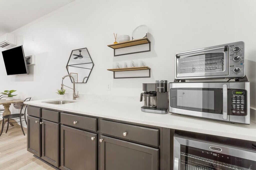 Feel at home in this boutique, elegantly designed studio in the heart of the Village of South Walton, offering a coveted coastal escape for two. This intimate sanctuary blends coastal charm with discreet sophistication. You’ll love the clean, modern lines and cozy layout, perfect for unwinding after an afternoon of sun and surf. The staff ensures high-speed internet and responsive service; however, guests seeking uninterrupted connectivity are advised to bring a hotspot, just in case. One vehicle is allowed, no exceptions. You're just a short walk from culinary gems like La Cocina, Wild Olives, Pescado, Havana Beach Bar & Grill, and more. Wander cobblestone alleys to discover Seacrest’s sundries and boutique shopping, or rent a bike toward the pristine sands of Rosemary and Alys Beach. A seasonal trolley makes beach access effortless, while deeded shoreline and exclusive amenities reinforce the prestige of your stay. Trolley service is unavailable from November 1 to February 28/29. If you are renting dates from March 1 to October 31, it is highly recommended that you secure beach chair service through Seacrest's exclusive vendor, LaDolce Vita, soon after booking to ensure you have reserved a space on the beach. On their site, select "30A South Walton," then select "The Villas at Sunset Beach and Seacrest Beach" (your beach is Seacrest). They will request our address to reserve your chairs, which will be found on your rental agreement after booking. Quiet hours are observed from 11 PM to 7 AM. Guests must be at least 25 years old to rent this apartment. There will be no compensation to guests if internet service is intermittent or completely lost due to the service provider. If you are traveling for business and the internet makes or breaks your visit, we recommend that you bring your own hotspot. [SI]