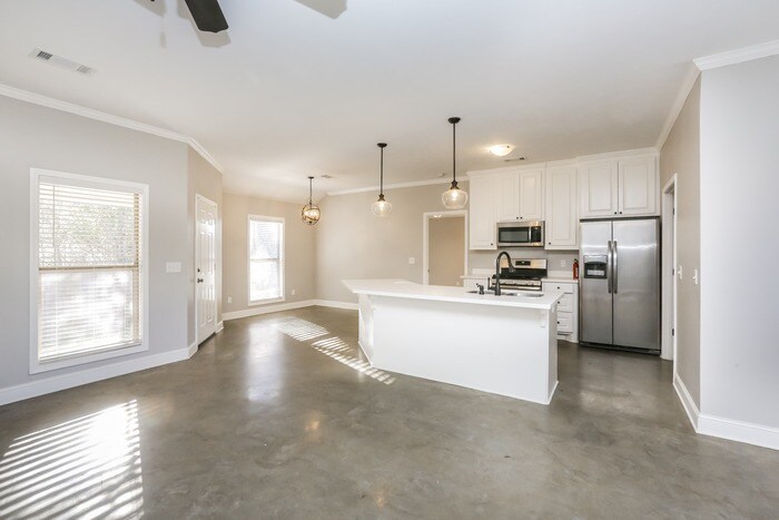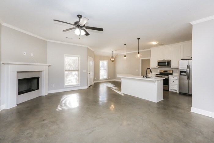 COMING SOON This home is coming soon. Please check to see the estimated availability date. Monthly Recurring Fees: $10.95 - Utility Management Step inside 104 Moss Creek and discover a layout that immediately feels open, connected, and easy to enjoy. This 3-bedroom, 2-bathroom home offers 1,428 square feet of thoughtfully arranged space in Canton, MS. The main living area welcomes you with expansive sightlines and polished concrete flooring that carries throughout, creating a seamless flow from one space to the next. The kitchen anchors the home with a large peninsula, ideal for casual dining or gathering, paired with white cabinetry, stainless steel appliances, a gas range, built-in microwave, and dishwasher. Just beyond, a dedicated dining area sits beneath statement lighting and connects directly to the covered back patio, extending your living space outdoors. The layout is split for added privacy, with the primary bedroom tucked on one side of the home. It features a tray ceiling, generous proportions, and an en-suite bath complete with dual sinks, a soaking tub, separate shower, and a walk-in closet. Two additional bedrooms are positioned on the opposite side, sharing a full bathroom and offering flexible options for guests, work-from-home setups, or additional living space. A dedicated laundry room and two-car garage add everyday convenience. Out back, the covered patio overlooks a spacious yard, offering room to enjoy the outdoors in a setting that feels tucked away while still being close to local dining, shopping, and major roadways connecting you to Jackson and surrounding areas. With its open layout, practical design, and accessible location, this home brings together the details that make daily living feel effortless. Apply Now! *Maymont Homes provides residents with convenient solutions, including simplified utility billing and flexible rent payment options. Contact us for more details. This information is deemed reliable, but not guaranteed. All measurements are approximate. Actual product and home specifications may vary in dimension or detail. Images are for representational purposes only. Some programs and services may not be available in all market areas. Prices and availability are subject to change without notice. Advertised rent prices do not include the required application fee, the partially refundable reservation fee (due upon application approval), or the mandatory monthly utility management fee (in select market areas.) Residents must maintain renters insurance as specified in their lease. If third-party renters insurance is not provided, residents will be automatically enrolled in our Master Insurance Policy for a fee. Select homes may be located in communities that require a monthly fee for community-specific amenities or services. For complete details, please contact a company leasing representative. Equal Housing Opportunity. This property is subject to homeowners' association (HOA) governance; restrictions and covenants may apply. Estimated availability date is subject to change based on construction timelines and move-out confirmation. Contact us to schedule a showing.