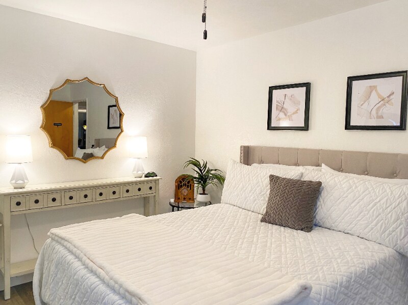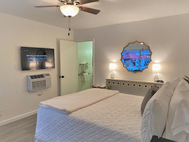 Property Id: 2125052 This fully furnished private bedroom with an en-suite bathroom is ideal for professionals seeking a quiet, comfortable stay. Your room includes: • FULLY FURNISHED • All utilities included (water, gas, electric, garbage, internet/wifi) • Weekly housekeeping service included • A cozy queen-sized bed • Private bathroom with shower • 43” flat screen Smart TV with Wi-Fi • Mini refrigerator • Ceiling fan and individual AC/Heat • Private patio with tranquil garden views Guests also have shared access to: • A fully equipped kitchen • Dining room • Back patio and peaceful garden areas Ample off-street parking is available right in front of the property. Whether you're here for work or relaxation, this quiet retreat offers the perfect blend of privacy and convenience. • Rent: $1,400 month • $300 security deposit • Available starting December 1, 2025 • 30-day minimum stay • No smoking or vaping anywhere on the property. • No pets allowed • Credit Score of 680 or higher required