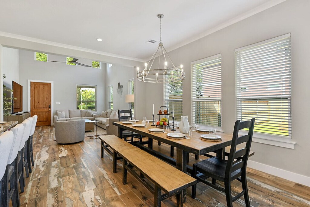 Welcome to Aggieland Crossing! Feel at home in this ideal Aggieland retreat, just 3 minutes from Kyle Field and steps from Texas A&M. Located across the street from campus and near Postoak Mall, Century Square, Napa Flats, Atami, and the nightlife of Northgate, you’ll be in the center of all the action. This spacious and stylish home features 5 bedrooms and 5.5 baths, and it sleeps up to 18 guests. This home is entertainment ready with an open concept living, dining, and kitchen area featuring an 86” TV. The oversized island and fully stocked kitchen are perfect for group gatherings. Enjoy the backyard with games and seating, a porch TV for game day, and a large grill for cookouts. Parking is allowed only in respective areas on the property, and towing is enforced for illegally parked cars. This centrally located home is steps away from Texas A&M Campus and a short drive from the George W. Bush Presidential Library & Museum and the MSC Opas Theater. It's also near dining, shopping, and nightlife. The property may have one or more actively recording cameras overlooking the entrance, driveway, and backyard areas, which record audio and video. All devices are on the exterior of the property. Smoking is not allowed in or on the property, and if there is any evidence of smoking, $400 will be retained to deodorize the home. Do not turn the thermostat below 69 during the summer, as the unit could freeze, and you will be charged the cost to repair the heating/cooling system. When leaving in the summer season, turn the thermostat up to 80 degrees. When leaving in the winter season, turn the thermostat down to 60 degrees. People other than those accounted for in the booking agreement may not stay overnight in the property. If unauthorized guests have stayed, a fee of $300 will be retained plus $25 per person. Pets are not allowed at this property. If a pet is found on the property, a pet fee will be charged, and the booking may be terminated. Parties are prohibited. If the cleaning crew finds that the property has been left excessively dirty, you will be billed for the additional cleaning time at a rate of $50 per hour. Do not flush anything other than toilet paper. If feminine products or other products besides toilet paper have been flushed and clog the plumbing system, you will be charged the cost of the plumbing repair. Fires are not allowed on the property, and absolutely no candles may be burned in the house or on the property. If you wish to have an event at the property, permission must be obtained, and an event fee will be added. Guests shall not disturb, annoy, endanger, or inconvenience neighbors, nor use the premises for any immoral or unlawful act. Any guest who is found using illegal drugs or allows others to use illegal drugs on the premises will be immediately denied continued occupancy at these premises. Should there be security cameras, guests may not alter, tamper with, or access in any way. Failure to follow this rule will result in charges for the full amount of the damages caused by such failure. Guests must be a minimum of 25 years or older to sign the booking agreement and be responsible for all guests in the party. Guests must digitally sign the booking agreement prior to check-in. Registration Number: STR2024-000067 [SI]