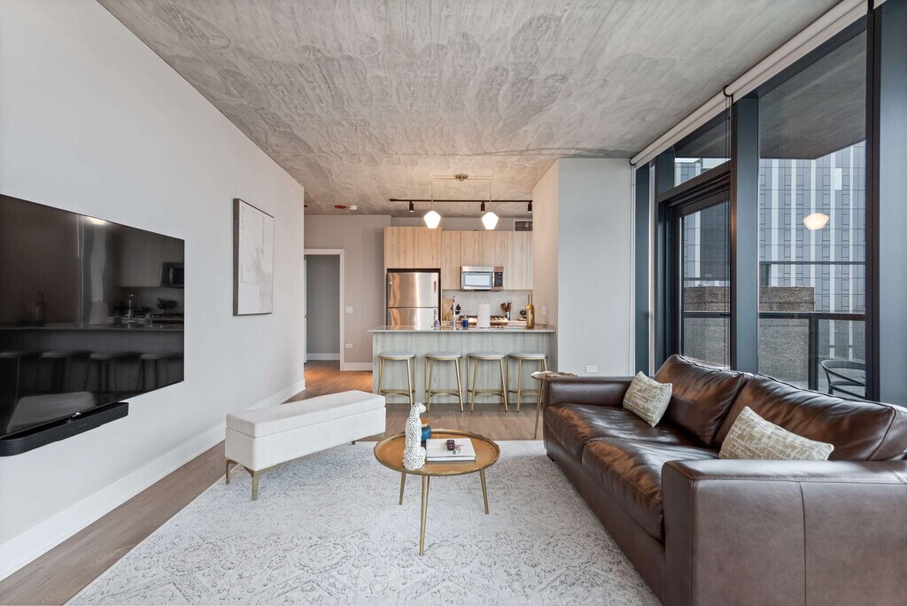 'The Flame' is your perfect Chicago base for an unforgettable adventure, complete with a private balcony and exceptional amenities. This apartment offers skyline balcony views and an open living space, sleeping up to six with two queen beds and a rollaway. It includes two bathrooms and access to a fully equipped fitness center, all just five minutes from Little Italy and Fulton Market. Designed with you in mind, this apartment features a Sonos sound system and a full kitchen with top brands, ensuring you feel at home. You can also request a Pack & Play for added convenience. Parking is available for $50 per night, though spots are limited, so inquire when booking to check availability. Pre-approved pets are welcome with a $50 per night fee, with a 35lb weight limit and breed restrictions. Situated in the West Loop neighborhood, you can easily explore local gems like Little Italy, Union Park, and the National Hellenic Museum, thanks to its proximity to subways and public transportation. Enjoy art and gourmet dining at Fulton Market Kitchen or hunt for vintage treasures at Randolph Street Market, just a five-minute drive away. For convenient dining options, try takeout from nearby restaurants like The Publican, Carnivale, and Beatrix, all within walking distance. Check-in is available from 4 pm (same-day 6 pm) until 11 pm, and check-out must be completed before 11 am. Unauthorized late check-out may result in additional charges. Smoking and vaping of any kind are strictly prohibited within the unit and the building, with any violation resulting in an immediate fine of $500 per occurrence and termination of the stay without a refund. Parties, gatherings, or events are strictly prohibited and will result in the forfeiture of the full security deposit and any additional fines set by the condominium rules and regulations, along with termination of the stay without a refund. Quiet hours are enforced from 10 pm to 8 am, and guests are asked to be considerate of neighbors. Registration Number: 2929694 [SI]