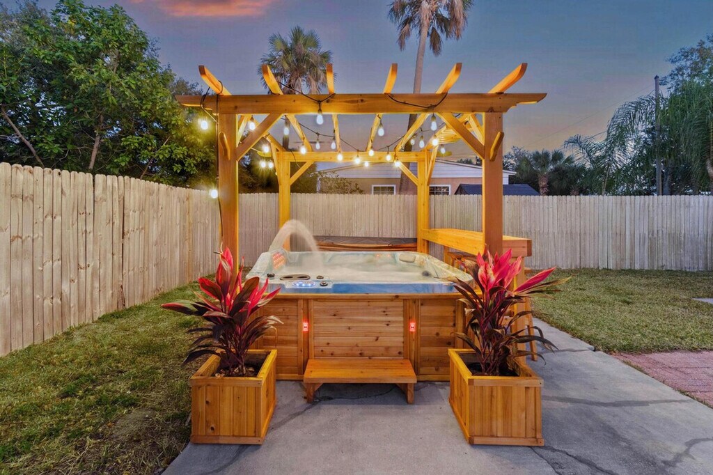 Feel at home in this bright and comfortable home with a private entry and parking. This property features three inviting bedrooms, a spacious living area, and one spacious bathroom with a walk-in shower. This spacious home offers plenty of room to unwind, featuring brand new beds and a large sectional. The fully equipped kitchen and inside laundry provide all the conveniences of home. You'll also find beach gear, a designated desk space for remote work, a lounging space, a dining area, and a large screened TV. There is a large, spacious yard shared with one other unit when occupied. Shared exterior amenities include a jacuzzi, pickle ball court, mini putting green, and BBQ area. Located in a quiet residential neighborhood just minutes from Madeira/Redington Beaches, this home offers easy access to local restaurants, coffee shops, waterfront parks, and shopping. This is a private home that shares one wall with a neighboring unit (like a duplex). The two units can be booked together. There are separate entrances and parking. [SI]