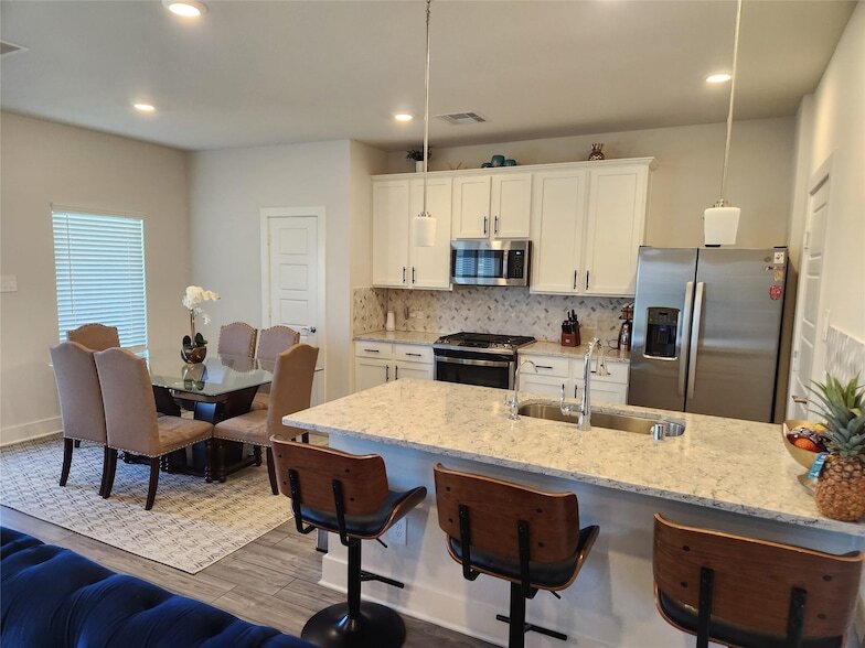 Beautifully maintained home in Harper's Preserve, minutes from The Woodlands with Conroe ISD schools. This 3 bedroom, 2 1/2 bath residence boasts an open floor plan with a stunning granite island kitchen, breakfast bar, and family room that flows seamlessly. Enjoy vinyl plank wood flooring, spacious bedrooms, and a primary bedroom with dual vanities and separate soaker tub. The property features four sides brick, a front and back sprinkler system, and a covered back patio perfect for entertaining. The community offers, walking trails, parks, pool, and more. Ready to move on May 15, 2026. Schedule your tour today!