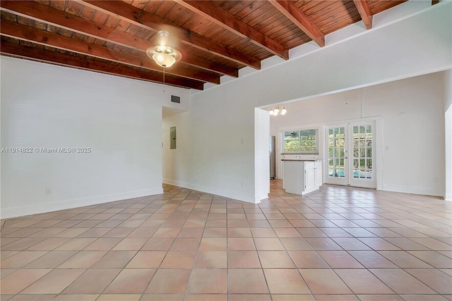 Charming & architecturally stylish, ranch house with tongue & groove pine-wood vaulted ceilings* Electric gated entry into your private oasis * Open floor plan for living, dining and kitchen areas * 3rd bedroom does not have a closet ; can be used as den/office * front screened-in patio* Wood French doors leading out to private pool & patio area from the kitchen & master bedroom * Separate laundry room off the covered patio terrace * Additional storage rooms off the patio * quiet street * Tenant must do a background check * Rent includes lawn and pool maintenance and water *