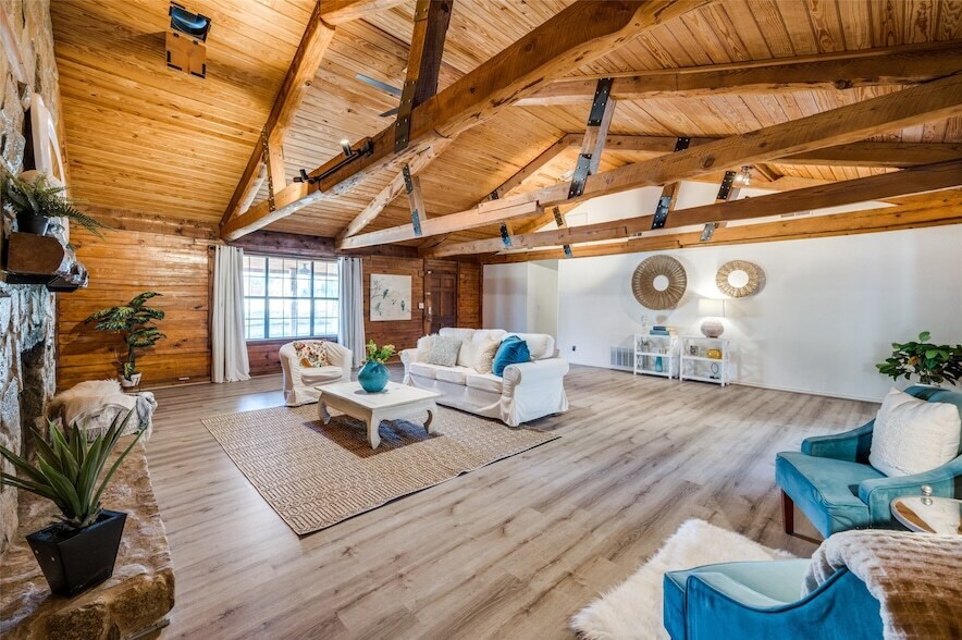 Huge corner lot near downtown Prosper and in Prosper ISD. 3 large bedrooms and 2 full baths in a single-story layout. The inside living space has a cozy cabin feel with vaulted ceilings, wood beams, and large fireplace. The fenced backyard is expansive, with room to spread out and relax. Secondary fridge included. Quiet neighborhood, near Eagle Stadium, Preston Road and downtown eateries. Easy access to the Dallas Tollway. Close proximity to PGA Headquarters, Star Ford Center, 121 and many major corporations. Property for lease also.