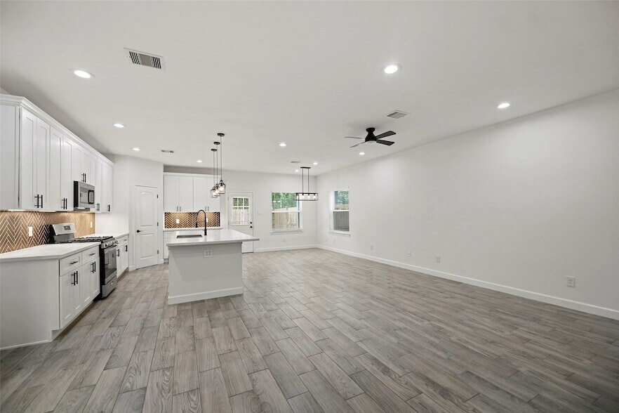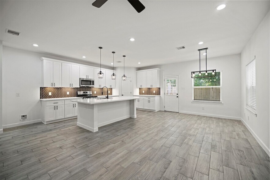 Welcome to 1071 Saint Clair!! This beautifully designed MOVE-IN READY, MODERN style home is located in the Dream Homes Garden Subdivision. This floorplan is a 4 bedroom, 2.5 bath, 2 car garage and is designed with an open concept for family and entertainment in mind. The dining area opens up to the back yard and covered patio 22' x 6'. The kitchen boasts stainless steel appliances, quartz countertops, soft closing door & drawer cabinets, walk in pantry, and a huge kitchen island with room for bar stools. The oversized primary bedroom includes his & hers walk in closets, and an ensuite bathroom with frameless shower, private toilet, and double vanities. Other features incorporated in the home: recessed lights, ceiling fans in every bedroom, tile flooring in living/kitchen/dining/bathrooms, custom tile surround showers and kitchen backsplash, carpet in bedrooms, custom stair railing, upgraded doors, and matte black door hardware, lighting & plumbing fixtures.