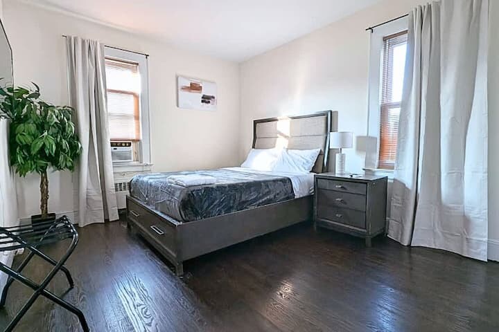 Property Id: 2281674 Spacious fully furnished 4-bedroom 2-bathroom monthly rental available with a 30-day minimum. Located in Newark’s Ironbound District, this home is well suited for families, shared housing, relocation, or temporary living arrangements. Utilities, fast WiFi, and two secure parking spaces are included. Convenient access to NYC (2-minute walk to bus line for PATH Train Station > 25min to Manhattan) + Airport (EWR > 7 min Drive) while maintaining a calm neighborhood environment. Refundable Security Deposit negotiable based on Lease Duration. Please Complete this Pre-Screener to Schedule a Property Tour: Key Features: - Fully furnished and move-in ready - Month-to-month rental (30-day minimum) - Four bedrooms and two bathrooms - Two secure garage parking spaces - Utilities and WiFi included - Suitable for larger households or shared housing Lease Terms: - Rent: $3,950/month - Security deposit: 1 Month Security Deposit (Refundable & negotiable based on Lease Duration) - Credit score: 600+ preferred - Income: 2.5x rent - Small dogs permitted - No smoking or vaping - Maintenance requests via email - 30-day notice required for non-renewal