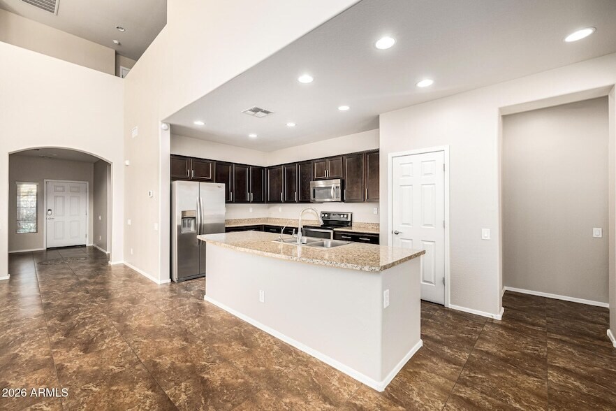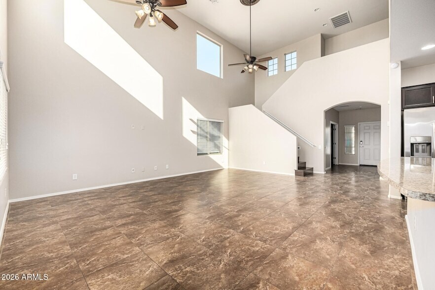 Take a look at what this big, beautiful, 2 story home has to offer! Feels fresh with NEW PAINT throughout and brand new ceiling fans in the bedrooms! A fantastic open concept floor plan, vaulted ceilings and south facing windows, allows tons of natural light to shine through. Enjoy the spacious kitchen with lots of cabinet space, stainless steel appliances, walk-in pantry, water softener, reverse osmosis system AND a tankless water heater! Primary bedroom, flexible den/office and laundry room are located on the first floor. Primary bath brings it all, double sinks, separate shower & tub, private toilet room and a large walk-in closet. Upstairs shows off even more space with a large loft area, 3 additional bedrooms, two of them with walk-in closets, and 2 full baths! No carpet, tile and wood vinyl flooring throughout. With ample storage inside, plus a 3 car tandem garage, there is plenty of room for all the toys and tools. The backyard is perfect for entertaining, with a large paver area, a pop of natural green grass patches, and covered patio. Located in a fast growing area of Peoria, surrounded by pretty desert mountain scenery, easy access to 303, shopping and dining, TSMC and great schools. Minimum 12 month lease required. This property will be professionally managed and is subject to additional property management fees, including but not limited to a monthly Tenant Benefit Package and Admin Fees. Pets upon lessor approval.
