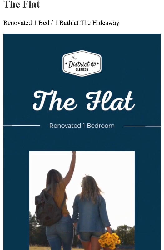 Property Id: 2252276 Lease Takeover for 1 bedroom at The District at Clemson. The District at Clemson is more than just four walls. We offer spacious townhomes for residents of our Clemson off-campus community. With so many great perks, residents are sure to find what suits their unique needs here! After all, it is designed for student living at Clemson University.