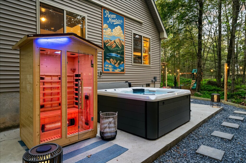 This 3-bedroom home is in a prime location and has everything you need for an amazing vacation in Pocono Lake, PA. Located within the beautiful Locust Lake Village HOA, this charming retreat features 3 bedrooms and 2 bathrooms, comfortably accommodating up to 8 guests. Whether you’re planning a family getaway, a friends’ trip, or a weekend retreat, this home has everything you need for a memorable stay. Welcome to your cozy escape in the heart of Pocono Lake! Step inside to find inviting living spaces where you can relax, unwind, and make lasting memories. Cook up delicious meals in the fully equipped kitchen, share stories around the table, or cozy up after a day of adventure. With plenty of room for everyone, it’s the perfect place to recharge. The home features a private sauna, hot tub, fire pit, kids playground, corn hole, outdoor chess game, giant Jenga, outdoor patio/dining, BBQ grill, children’s books and toys, TVs in each bedroom, indoor fireplace, and a dedicated workspace. Up to 2 dogs are allowed for $125 per stay, no cats please. Parking is available in the driveway and street for up to 6 cars. A $35 guest registration fee applies to this home and will be charged at the time of booking. Surrounded by the beauty of the Pocono Mountains, you’ll have endless opportunities for fun—whether you’re hiking, skiing, enjoying the lake, or simply soaking up the fresh mountain air. Nearby attractions include Kalahari Resorts and Indoor Waterpark just 11 miles away, Jack Frost Big Boulder Ski Resort 13 miles from the home, Camelback Mountain Adventures 16 miles away, Pocono Raceway 18 miles away, and Hickory Run State Park only 19 miles away. Local dining options include Dominic’s of New York Pizzeria, Jubilee Restaurant, Nick’s Lake House, and Barley Creek Brewing Company. Renting a car is a convenient option to explore the area, and rideshare services like Uber and Lyft are readily available. Check-in is at 4pm and check-out is at 10am. All guests must wear wristbands at all times to enjoy the community amenities, with a $50 replacement fee per wristband if any are missing. Guests must complete an online pre-registration form within 24 hours of booking to avoid cancellation. A parking pass must be displayed on your vehicle’s dashboard to avoid HOA fines. No parties allowed—violations may result in immediate termination of the stay. An exterior camera is installed solely to monitor our cleaning team for quality and security purposes. Guests must be 21 years or older to book this property. Includes a dedicated workspace with air conditioning in Bedroom 1, providing a comfortable environment for remote work. A laptop computer is not included. [SI]