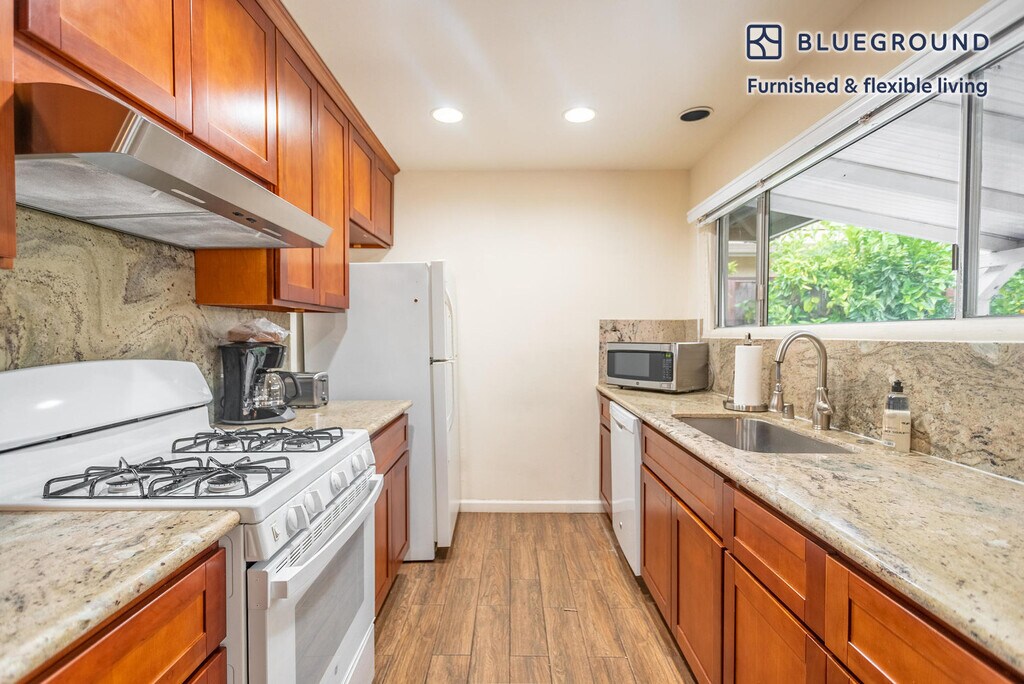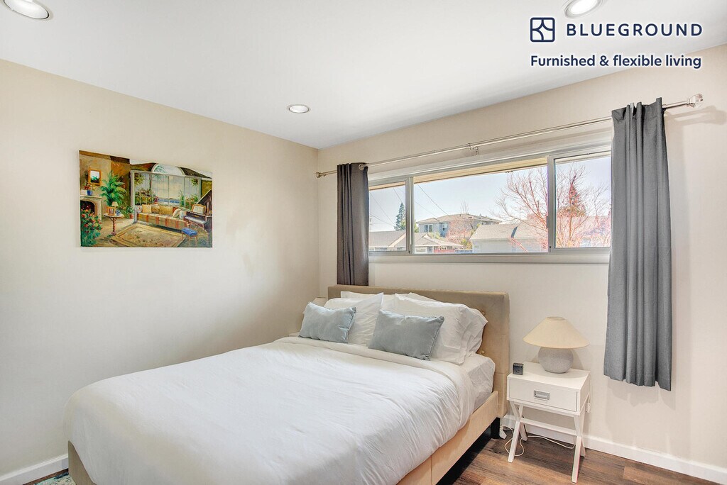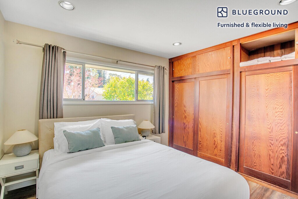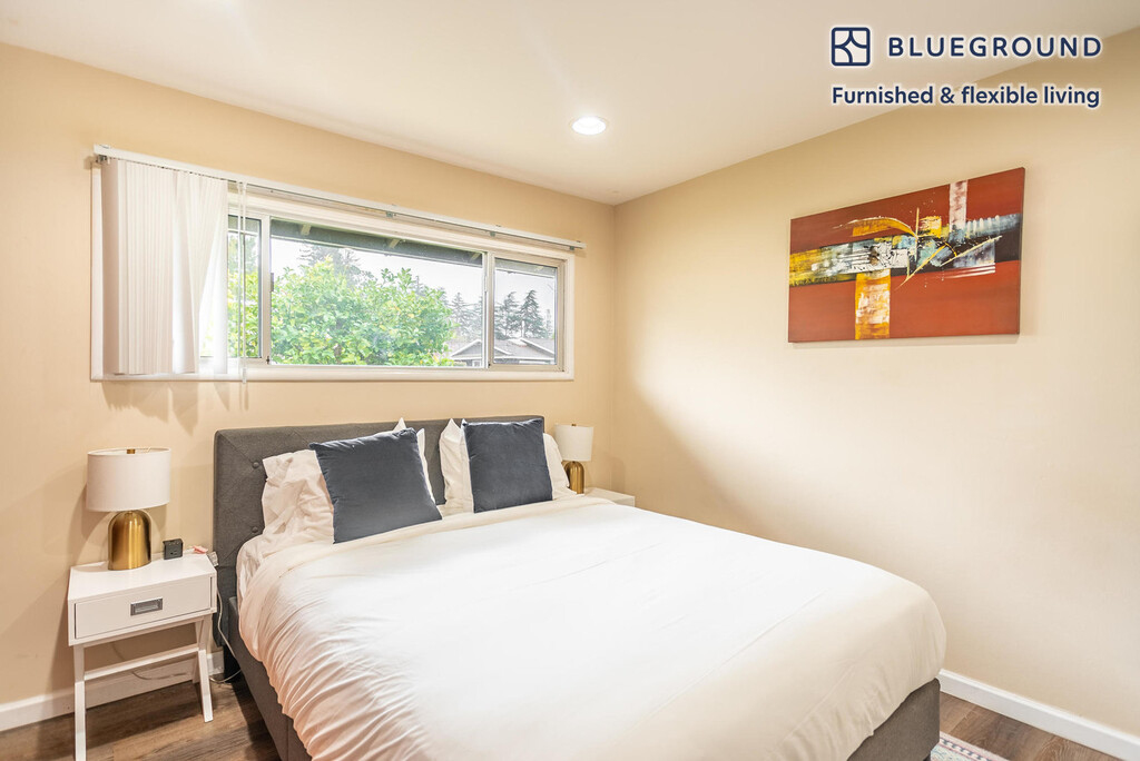 Show up and start living from day one in Mountain View with this stylish four bedroom Blueground house. You’ll love coming home to this thoughtfully furnished, beautifully designed, and fully equipped Mountain View home. (ID #SFO1583) The advertised rate of $5,100/month is the lowest available price, based on a 1 month(s) and 3 day(s) stay with a move-in date of December 21, 2025. If you’re looking for a 1-year stay, the rate is $6,890/month. Rates vary depending on the duration of stay, season, and other parameters. For exact pricing and additional pricing components, please visit our website and enter your desired move-in and move-out dates. The rate is applicable when billed upfront; it can be higher if billed in multiple payments. Brokers are welcome to reach out. Were you looking for an unfurnished lease? Try Blueground instead and upgrade from unfurnished to furnished living: - Furnished at rates comparable to unfurnished - No setup or furniture costs - save thousands - Move-in ready - save time, just bring your suitcase Designed with you in mind Thoughtfully designed with bespoke finishes, modern furnishings, and a fully equipped kitchen, you’ll enjoy that “I’m home” feeling with this Blueground house. Whether you’re lounging in your charming living room streaming the latest and greatest entertainment on the smart TV or premium wireless speaker, or getting some well-earned rest on the superior quality mattress with luxury linens, you’ll fall in love with everything this Mountain View house has to offer. This house also offers in-house laundry. Sleeping arrangements Queen Bed, 63in/160cm Queen Bed, 63in/160cm Queen Bed, 63in/160cm Queen Bed, 63in/160cm Amenities Building amenities unique to this four bedroom house include an on-site: - Dryer - Washing machine - Parking - Pets allowed Arrival and ongoing support The entire house is yours to enjoy! Throughout your stay, you’ll have access to our Client Experience team through the Blueground App. You can schedule additional cleanings, submit maintenance requests, and view our neighborhood recommendations with just a few taps. We’ll share all details upon confirmation of your stay. Ideally Located This furnished home is located in Mountain View, in Santa Clara County. It is named for the unbeatable views of the Santa Cruz Mountains. Situated in the southern end of the San Francisco Bay Area, residents enjoy the many parks, specifically Shoreline Park, which is the largest in Mountain View and includes an amphitheater and golf course. Go for a walk or run on the San Francisco Bay Trail. In addition, Stevens Creek goes through Mountain View and empties in Shoreline. A paved path for pedestrians and bikes runs alongside the creek, which is ideal for nature lovers. The nearby cities of Palo Alto, Los Altos and Sunnyvale are all easily connected by bus and rail service. Other things to note This Blueground house has flexible lease options, allowing you to book it for one month, a year, or more. Pets are welcome, though weight limits and breed restrictions apply and may incur fees. Parking is offered based on availability and is subject to a fee. Please keep in mind that this is a walk up building. We take great pride in ensuring every photo displayed is shot in our own units with our actual furnishings. That said, we regularly refresh our decor and furniture arrangement, which may differ from what’s pictured. Also note - The apartment's fireplace is for decorative purposes only [SI]