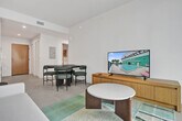 The advertised rate of $3,744/month is the lowest available price, based on a 30 day(s) stay with a move-in date of May 4, 2026. Rates vary depending on the duration of stay, season, and other parameters. For exact pricing and additional pricing components, please visit our website and enter your desired move-in and move-out dates. The rate is applicable when billed upfront; it can be higher if billed in multiple payments. Feel at home in this residence located in the heart of Downtown Miami. This residence is perfectly suited for both relaxation and productivity. This residence offers a stylish, comfortable retreat with beautifully designed common areas. Guests have access to a rooftop pool with a Jacuzzi and cabanas, a rooftop restaurant and bar, and a fire pit lounge with breathtaking skyline views. Wellness is elevated with a state-of-the-art fitness center featuring saunas and plunge pools, while work and entertainment needs are met with a co-working center, gaming lounge, and private media room. Additional conveniences such as a juice and coffee bar, private dining clubroom, and curated museum-quality art throughout the building complete the experience. The full kitchen includes high-end appliances, an electric cooktop, microwave, fridge, dishwasher, espresso machine with coffee pods, tea kettle, toaster and essentials. The residence also features a flat-screen TV, dining table, high-speed Wi-Fi, in-unit washer and dryer, and smart A/C and lighting controls. Optional housekeeping is available for a fee. Located in the heart of Downtown Miami, this residence offers a refined urban escape surrounded by the city’s most dynamic dining, entertainment, and cultural destinations. Many restaurants, cafés, parks, and cultural attractions are within walking distance. Public transportation options are plentiful: Metromover (free) provides quick access throughout Downtown, Brickell, and the Arts & Entertainment District Metrorail offers direct connections to Miami International Airport and surrounding neighborhoods Brightline is nearby for fast travel to Fort Lauderdale, West Palm Beach, and Orlando. Rideshare services like Uber and Lyft are widely available and typically arrive within minutes. For guests with a car, major highways are quickly accessible, making trips to Miami Beach, Wynwood, Brickell, and the Design District simple and efficient. The building offers 24/7 security and concierge. The building also has a smart-home building app and central A/C. Includes a spacious closet, designer furnishing, and blackout shades. [SI]