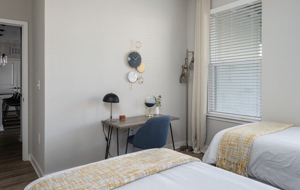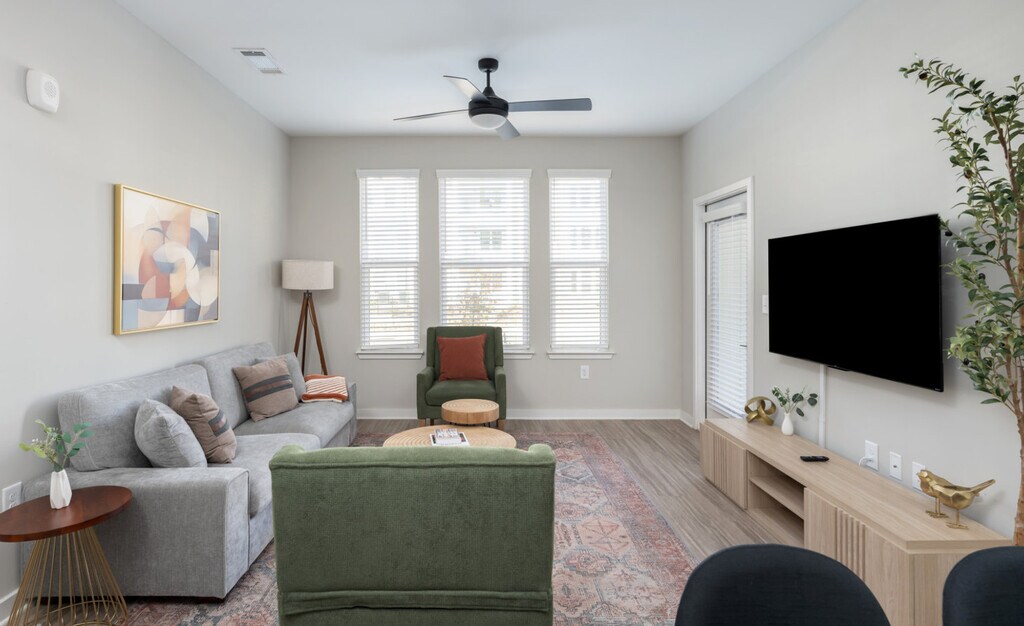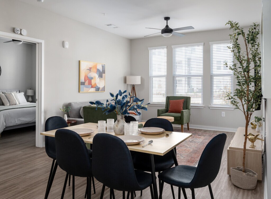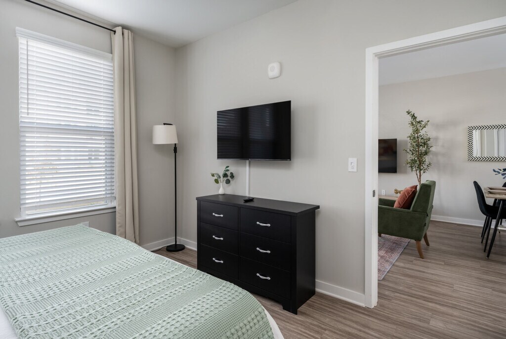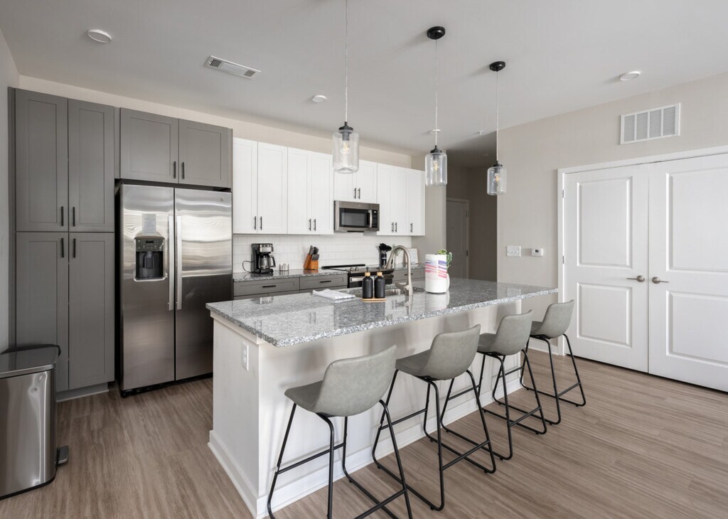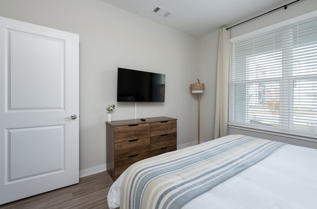 Welcome to this 3-bedroom, 2-bathroom new build retreat with brand new furnishings in the heart of Athens, Georgia. Nestled in a vibrant neighborhood, this home offers a blend of luxurious finishes and Southern charm, ensuring a memorable stay for you and your guests. Located on the 1st floor, it provides easy accessibility. Step into this modern and well-furnished living space, where luxury meets comfort. The apartment features hardwood floors throughout, with each bedroom offering a walk-in closet. The master and secondary bedrooms come with luxurious king-size beds with memory foam mattresses, while an additional bedroom offers two twin-size beds and a workstation. The fully equipped kitchen is a chef's delight with granite countertops and stainless steel appliances, including a dining table with seating for six and four countertop stools. Enjoy the stylish living area with contemporary furnishings and a 55” flat-screen smart TV set up with Netflix and Hulu. Enjoy 3 complimentary parking passes for convenient off-street parking. The community offers a game and pool room, co-working space, private workstations, a fitness center, a yoga room, outdoor grills, and a pool that is open seasonally. Conveniently located, this apartment is just 10 minutes from Downtown Athens, the University of Georgia, and the Georgia Theatre. The Athens Botanical Garden is 15 minutes away, and the Sandy Creek Nature Center is just 10 minutes from your doorstep. A Publix supermarket is within a 3-minute walk, making it easy to stock up on essentials. Your safety matters with a Ring camera located on the exterior part of the apartment. This is a non-smoking residential building and no parties are allowed. Quiet hours begin at 10 pm on weekdays and 11 pm on Friday and Saturday, with no loud music after these hours. Law enforcement will be called if these rules are violated with no exception. Includes a workstation in the additional bedroom, high-speed Wi-Fi, and access to co-working space and private workstations in the community area. [SI]