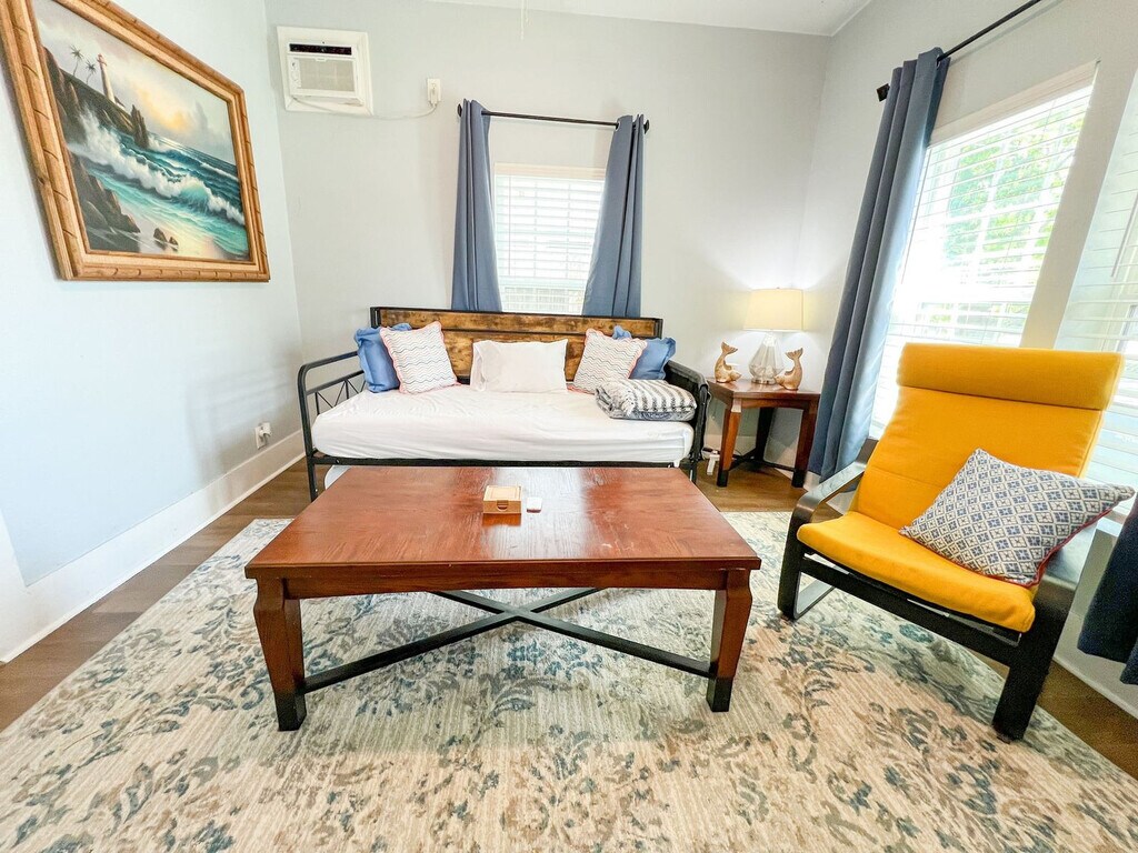 Explore this charming 1-bedroom, 1-bathroom historic duplex bungalow in Corpus Christi. Just 5 minutes from McGee Beach and Cole Park, this cozy retreat accommodates up to 4 guests with a Queen bed, a twin daybed, and a twin trundle. The fully equipped kitchen invites culinary adventures, and a full-size washer and dryer add convenience. This is one of two duplex apartments in this bungalow, offering approximately 600 square feet of living space. This sunny bungalow by the bay is your perfect Corpus Christi getaway. The cozy 1-bedroom bungalow serves as an ideal coastal escape, offering extended stay discounts for week-long or longer visits. Originally built in 1923, this remodeled historic bungalow retains much of its original charm. The fully furnished layout includes stainless steel appliances, a smart TV for entertainment, and a cozy coffee bar to start your day right. A desk and chair are available for remote working with high-speed Wi-Fi. Driveway parking is available on a first-come, first-served basis, with additional street parking in front of the home. Mid-stay cleaning is required for stays over 7 nights, with a fee equivalent to the regular cleaning fee. Extended stay cleaning fees of $65 per week apply for stays of 6 or more nights. Located in the heart of Corpus Christi, this bungalow is centrally located near Downtown, McGee Beach, Cole Park, and Pier. The vibrant neighborhood offers an array of dining options and is within walking distance to Christus Spohn Bayfront Hospital, grocery stores, cafes, and more. While a car is recommended due to the limited public transportation system, the property is steps away from a local bus stop and just 1 mile from the primary Corpus Christi bus station. The property has a no-pets policy, with a $100 fine for violations, and a no-smoking policy, with a $200 fine for violations verified by an ozone machine. A maximum of 4 guests is allowed, and violations will result in a canceled stay and non-refund. Check-in is any time after 4 PM, and check-out is by 11 AM. A $60 initial late fee applies for guests who do not check out by 11 AM, with an additional $30 per hour thereafter. No parties or events are allowed, and guests must notify the host of any issues within 2 hours of check-in. Trash must be placed in the provided receptacle at the back of the property, and a minimum charge of $50 will apply if checkout procedures are not followed. A minimum biohazard cleaning fee of $75 will be charged for any incidents involving blood, urine, feces, pet waste, etc. Guests assume responsibility for any accidents or injuries on the property and agree to release and indemnify the host from any liability. Personal mail, items, or packages may not be delivered to the home without express written consent from the host. Any items left behind will incur a minimum trip fee charge of $25 plus the cost of shipping. Includes a desk and desk chair for remote working with high-speed Wi-Fi. A laptop computer is not included. The bungalow is equipped with a Ring doorbell as a security measure that records video and sound. Both units of the duplex can be booked at a discount, and inquiries about group bookings are welcome. Starter supplies provided include trash bags, dishwashing pods, toilet paper, shampoo, conditioner, body wash, coffee, creamer, and sugar. These items are intended to get you started, and any additional supplies beyond the starter pack are the guest's responsibility unless the stay is 14 days or longer, in which case a mid-stay replenishment may be offered. Registration Number: 305198 [SI]