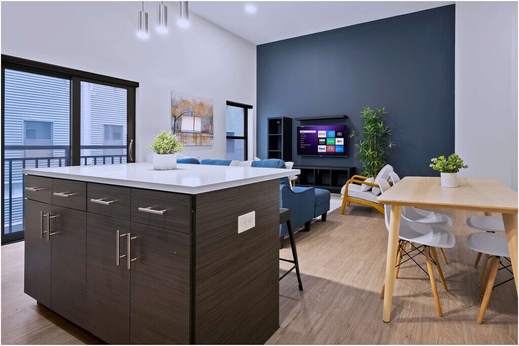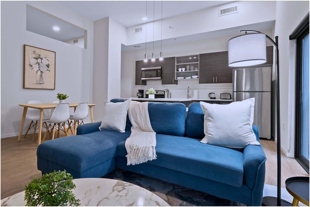 Feel at home in this thoughtfully styled 1-bedroom retreat in the heart of Cleveland, the perfect base for your Ohio stay. This contemporary haven features ambient LED lighting that complements the chic design of the living and dining spaces. Relax on the cozy sofa bed or catch your favorite shows on the 55” 4K HDR Smart TV with Netflix (use your own login). The fully stocked kitchen features modern appliances and all the essentials. Refresh in the spa-like bathroom, complete with both a tub and shower, fresh towels, and complimentary toiletries. Pets are allowed based on size and must be disclosed upfront to avoid cancellation. Additional pet cleaning fees are $25 per pet, per day for stays of 1-4 nights, $200 per pet for stays of 5-29 nights, and $300 per pet for stays of 30+ nights. Only cats and dogs are allowed, with a maximum of two pets. If undeclared pets are discovered, fees will double. An early check-in at 2 PM can be accommodated for a $35 fee, subject to approval. Minutes from top attractions such as Rocket Mortgage FieldHouse, FirstEnergy Stadium, Progressive Field, Playhouse Square, Rock & Roll Hall of Fame, Cleveland Hopkins International Airport, and Wolstein Center, this apartment is perfect for sports fans and concertgoers, with easy access to dining, entertainment, and more. Experience the best of Cleveland in a prime location. Security cameras are installed at the entrance and a noise detector is placed inside the unit. The noise detector does not record audio; it only monitors noise levels to detect loud disturbances or potential parties. Unauthorized gatherings will lead to police involvement, immediate eviction, and no refund. A $100 fee applies per unauthorized guest. Strictly no smoking or drug use is allowed inside the unit or anywhere in the building. Violations will result in immediate eviction, no refund, and a $1,000 cleaning fee for smoking or intoxication. To maintain cleanliness, please avoid leaving trash in front of your unit door, as non-compliance may result in a $250 charge. Take care of key fobs, as replacements cost $500 each. Standard check-in time is 4 PM and check-out time is strictly 10:00 AM. Includes a dedicated desk and ergonomic chair, creating the perfect set-up for productivity when needed, and fast Wi-Fi to stay connected. [SI]
