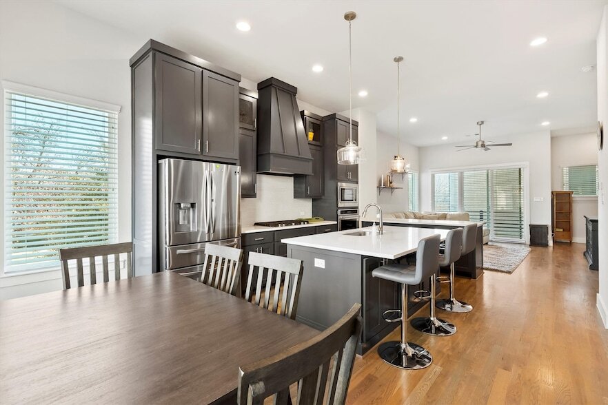 Welcome to 1103 Lavender Ridge, a fully detached single-family home in a gated community offering a sophisticated design, thoughtful upgrades, located in East Dallas and only minutes to Downtown Dallas. Built in 2020 by Centre Living Homes, this three level residence blends modern architecture with warm, livable spaces. The first floor offers a versatile guest suite features an en suite bath and a walk-in closet. 2-car attached garage with a tankless hot-water heater. The second floor is amazing for entertainment, offering vaulted ceilings and an expansive open layout filled with natural light. The spacious living area opens to a covered balcony with City views. Beautiful hardwood flooring continues throughout, leading into a gourmet kitchen with quartz countertops, a large kitchen island, updated appliance, stainless steel appliances, a convection oven, five burner gas cooktop and amble storage space. A powder bath and additional serving counter complete this level. On the third floor, the primary offers two walk-in closets, and a spa-inspired bath with dual vanities walk-in shower. The third bedroom also has their own ensuite bathroom and walk-in closet. Other features includes keyless entry, WiFi thermostats, a security system and the home is located on a corner lot. Community offers community spaces and guest parking in the gated area. This prime location is just minutes from Deep Ellum, Lower Greenville, Lakewood, Uptown and Oaklawn!