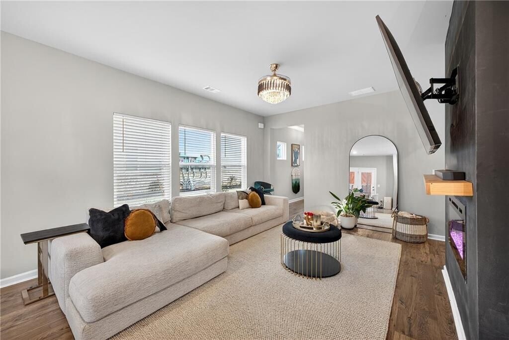 EXCLUSIVE MOVE-IN INCENTIVE:Receive up to one month of COMPLIMENTARY rent! Welcome to 1104 Elyse Lane, a nearly new construction 4-bedroom, 2.5-bath townhome located in the desirable Caldwell Park community. This beautifully designed home offers a seamless blend of modern living and everyday comfort in a peaceful, park-like setting. Inside, you’ll find hardwood floors throughout and an open-concept layout that flows effortlessly from room to room. The chef-inspired kitchen features a spacious center island and comes fully equipped with all kitchen appliances included, making it ideal for both entertaining and daily living. The family room is warm and inviting, complete with an electric fireplace that provides heat, perfect for cozy evenings at home. A washer and dryer are included, adding to the home’s move-in-ready convenience. Upstairs, the spacious primary suite serves as a private retreat and includes a custom Pax closet, while the additional bedrooms are thoughtfully positioned to provide comfort and privacy. Additional storage is conveniently located under the stairs. This home also offers excellent parking and storage with a 2-car garage and 2-car driveway. Residents of Caldwell Park enjoy access to community amenities including two dog parks, a pavilion, and a community fire pit, while benefiting from convenient access to major highways, shopping, dining, and nearby outdoor recreation. Pets are welcome, and 12–18 month lease terms are available, making this an ideal option for a variety of lifestyles. This move-in-ready townhome delivers modern finishes, flexible lease options, and an exceptional location.